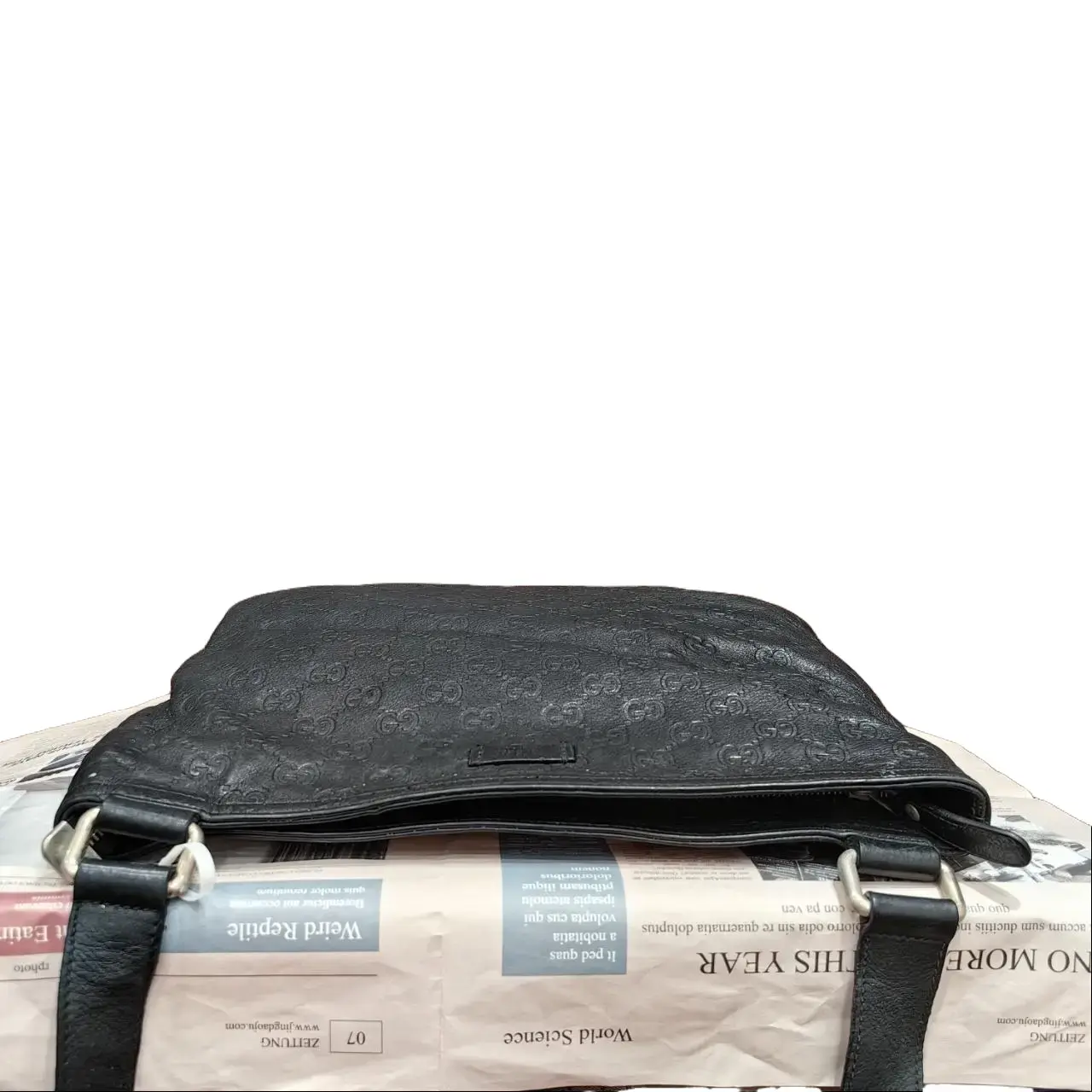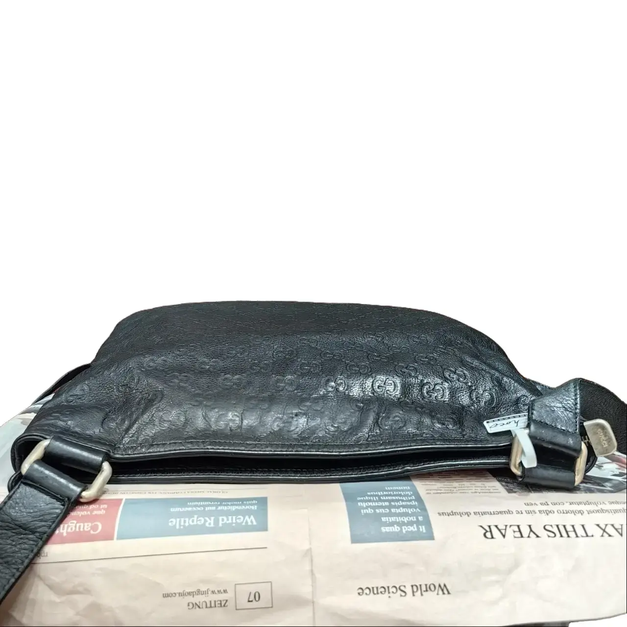 ·Product Details: - Black leather - Gucci embossed pattern - Adjustable strap - Perfect for everyday use. 📌