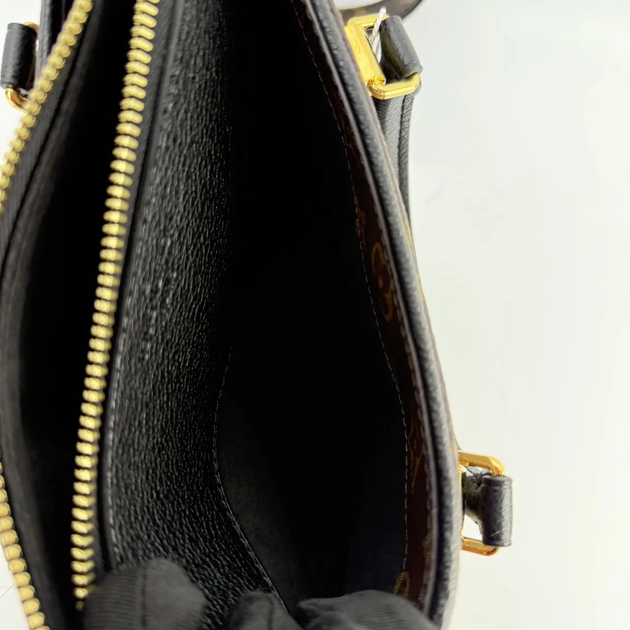 ·The image shows a bag with a monogram pattern and gold hardware. However, this does not provide specific details about "Pallas BB". 📸