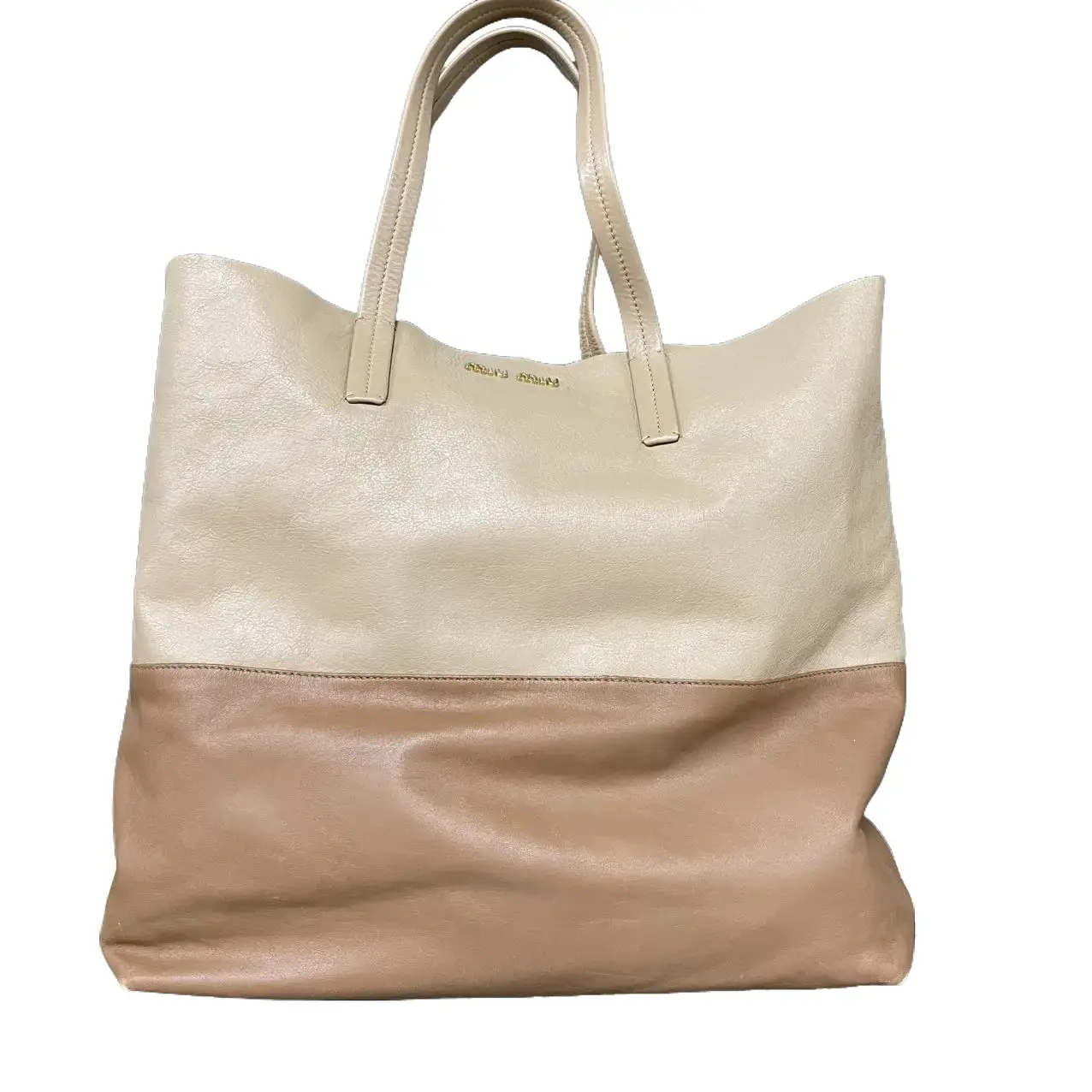 5. Pre-owned miumiu Miu Miu, all leather tote handbag, light coffee with light brown,