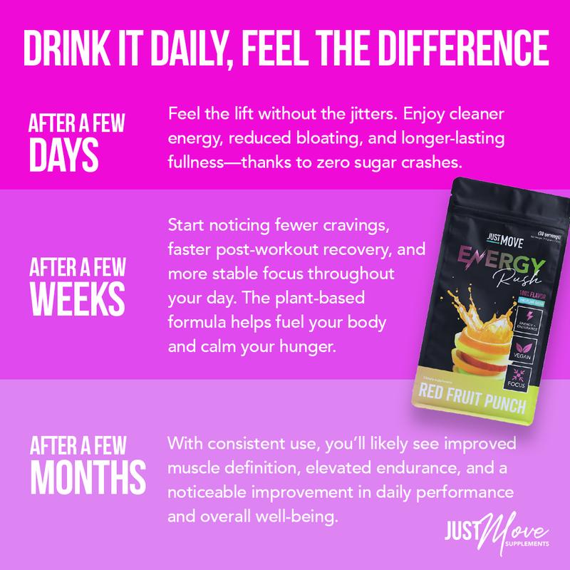 This is will always be my favorite product from Just Move! Even the mornings that I do not work out , I still take it in the morning. It definitely helps with my perimenopausal brain fog in the mornings! And the days I work out I add the sour apple fat burner for that extra boost! This is a monthly purchase for me!