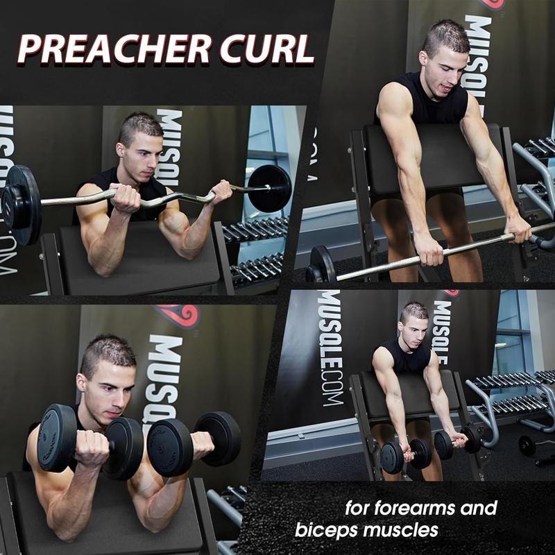 ·Design for Isolated: Worry about using momentum when training arms? Select Preacher curl bench, you're able to properly isolate your bicep muscle. Whether it's barbell/ez bar/dumbbell curls, Give your muscles more intense stimulation.