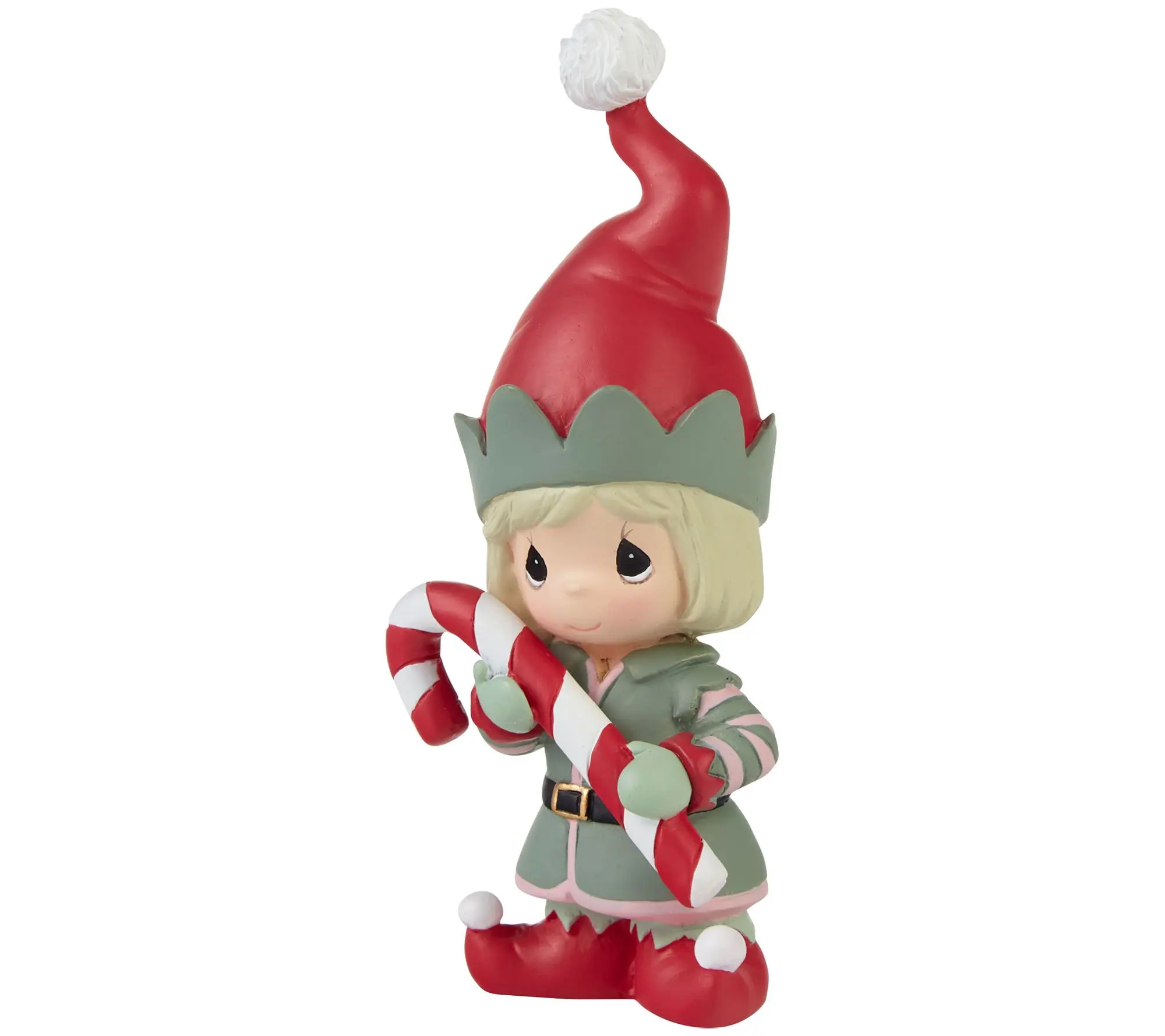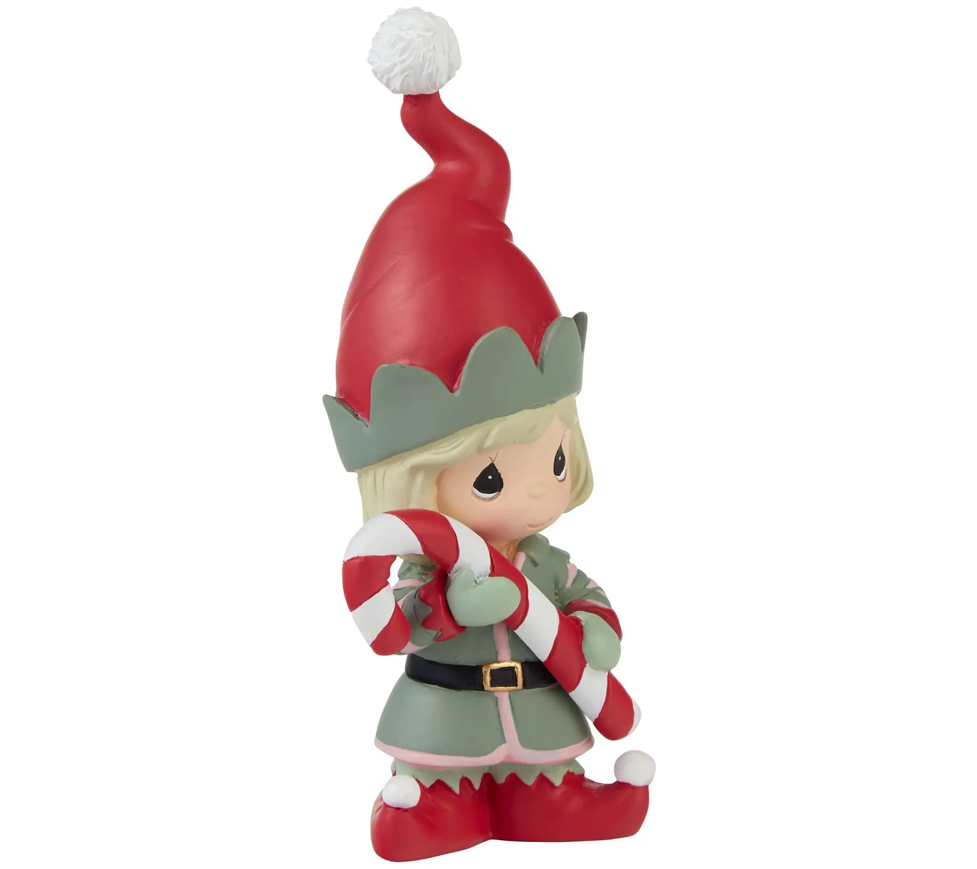 Good things come in small packages, like this adorable mini figurine! Sharing an oversized candy cane and a cheerful smile, this festively outfitted elf adds a touch of sweetness to the season. From Precious Moments.