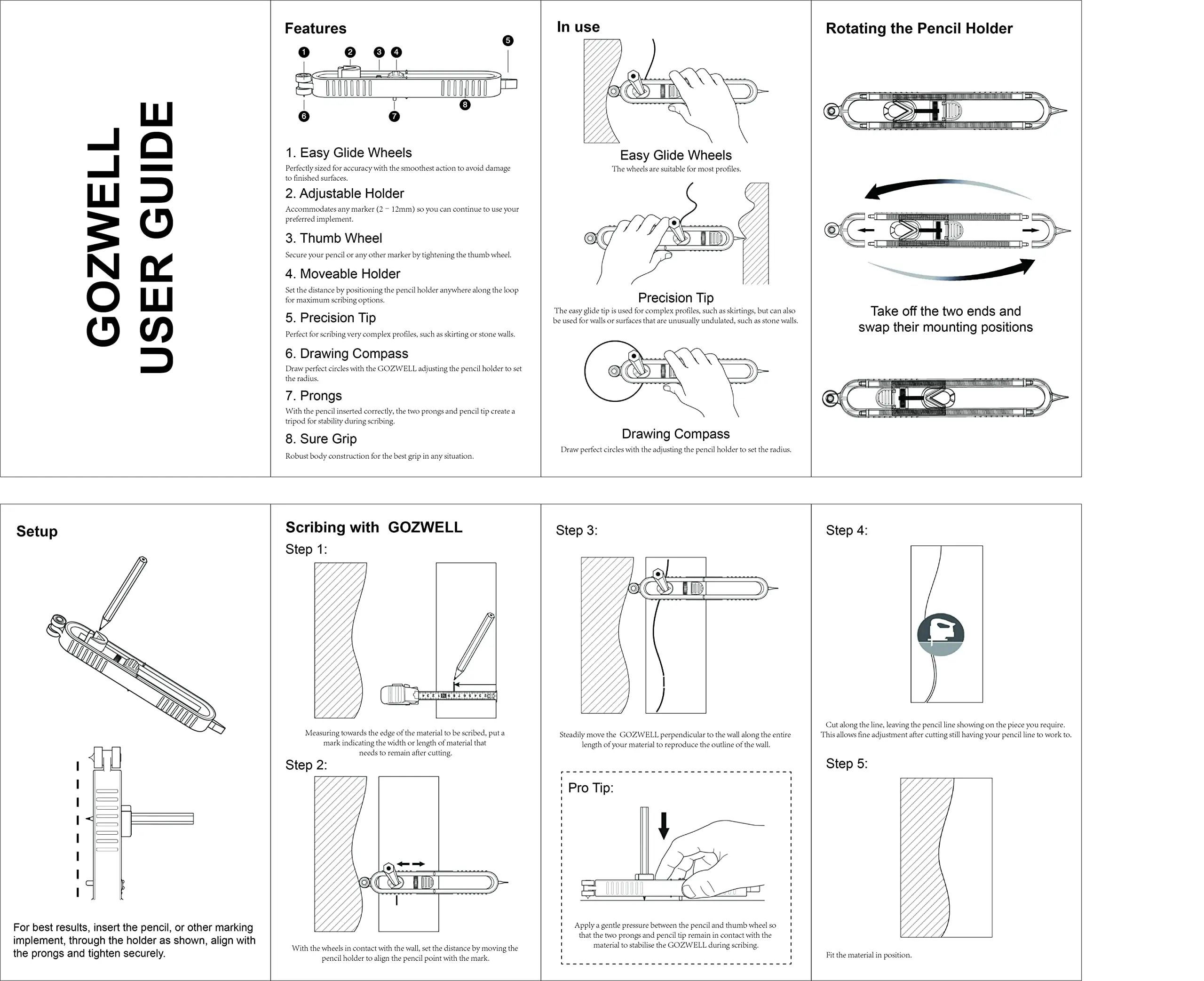 ·Easy to carry: The scribing tool is an indispensable perfect tool in the toolbox, easy to carry and store, it makes your contour copy work easier, saves time and improves work efficiency