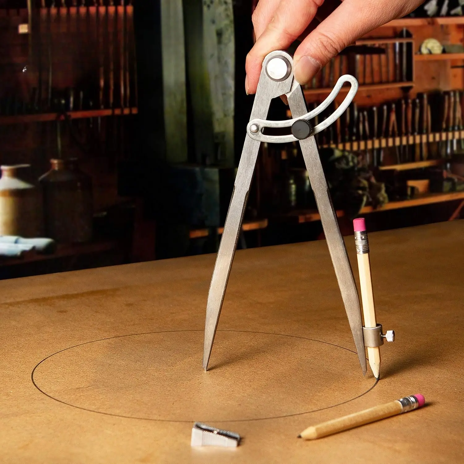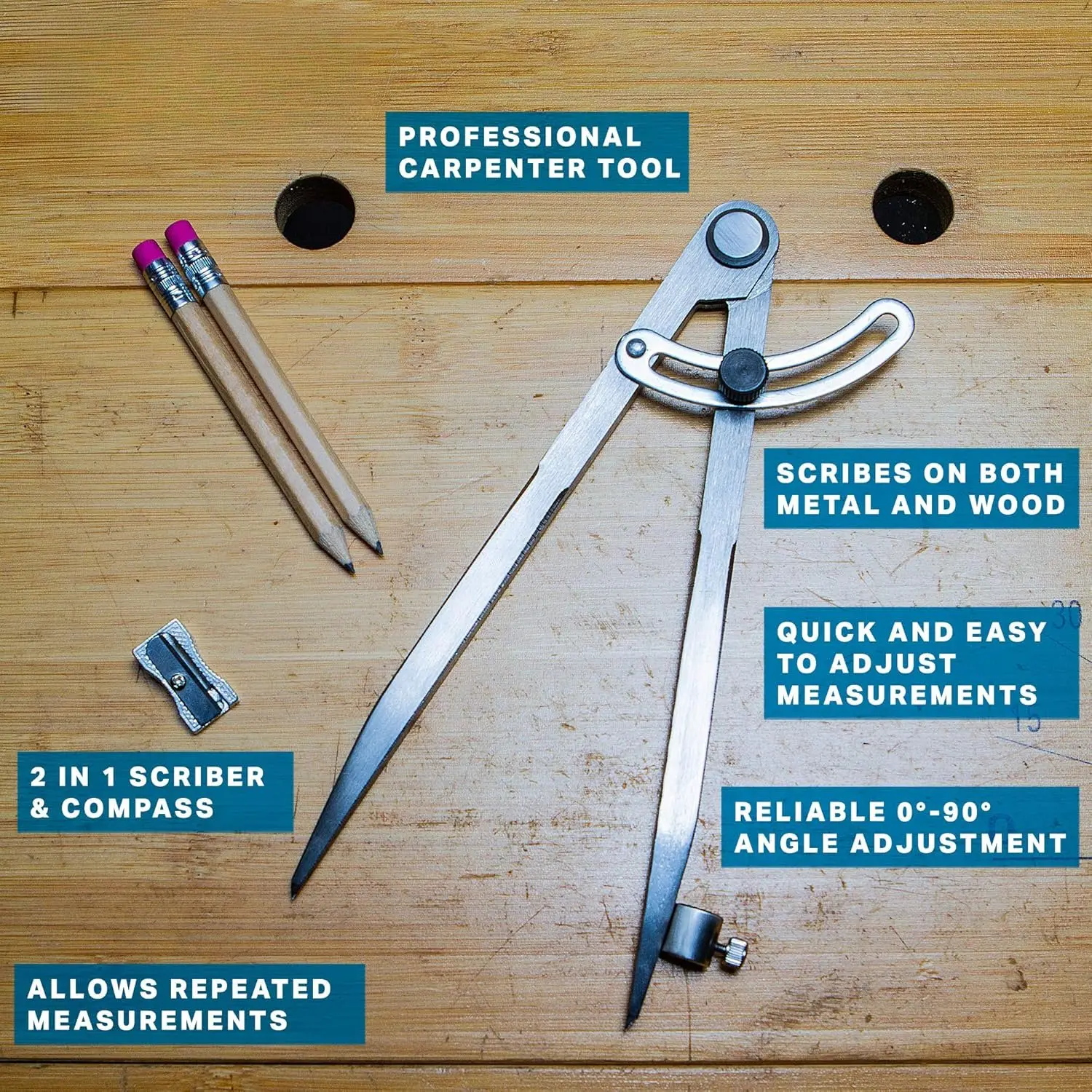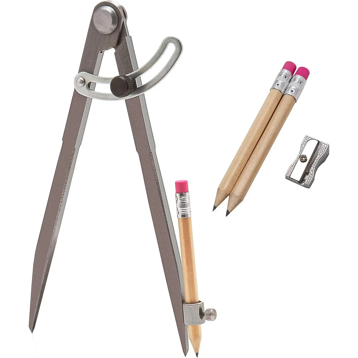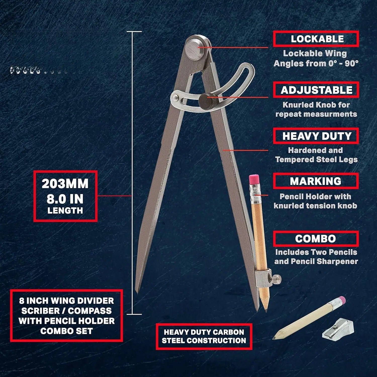 8 Inch Precision Locking Wing Divider/Woodworking Compass with Pencil Holder INCLUDES Two Pencils Pencil Sharpener Ideal for Drawing, Drafting, Carpentry