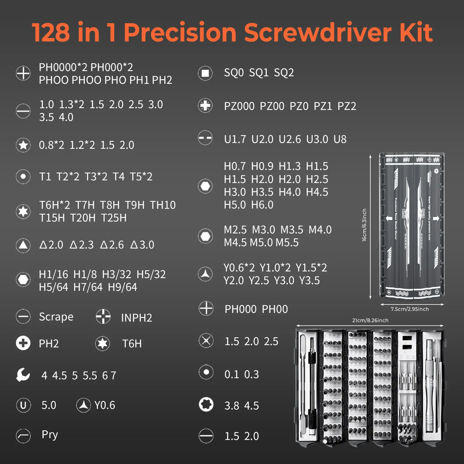 ✨ 128In1 Magnetic Screwdriver Bits Set: This set includes 122 magnetic screwdriver bits, perfect for various repair tasks. 🛠️ The kit is switchable, offering versatility for different electronic device repairs and assemblies. 📦