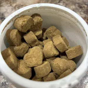 Been giving these to my 11-year-old, 105lb Presa Canario. While I haven’t seen any dramatic changes, he does seem a little better overall. What really matters is that he loves them—and I haven’t noticed the bad smell some reviewers mentioned (I keep ours sealed in the garage fridge). Bonus points for the heart shape—too cute. All in all, I’m happy with them and will probably order more.