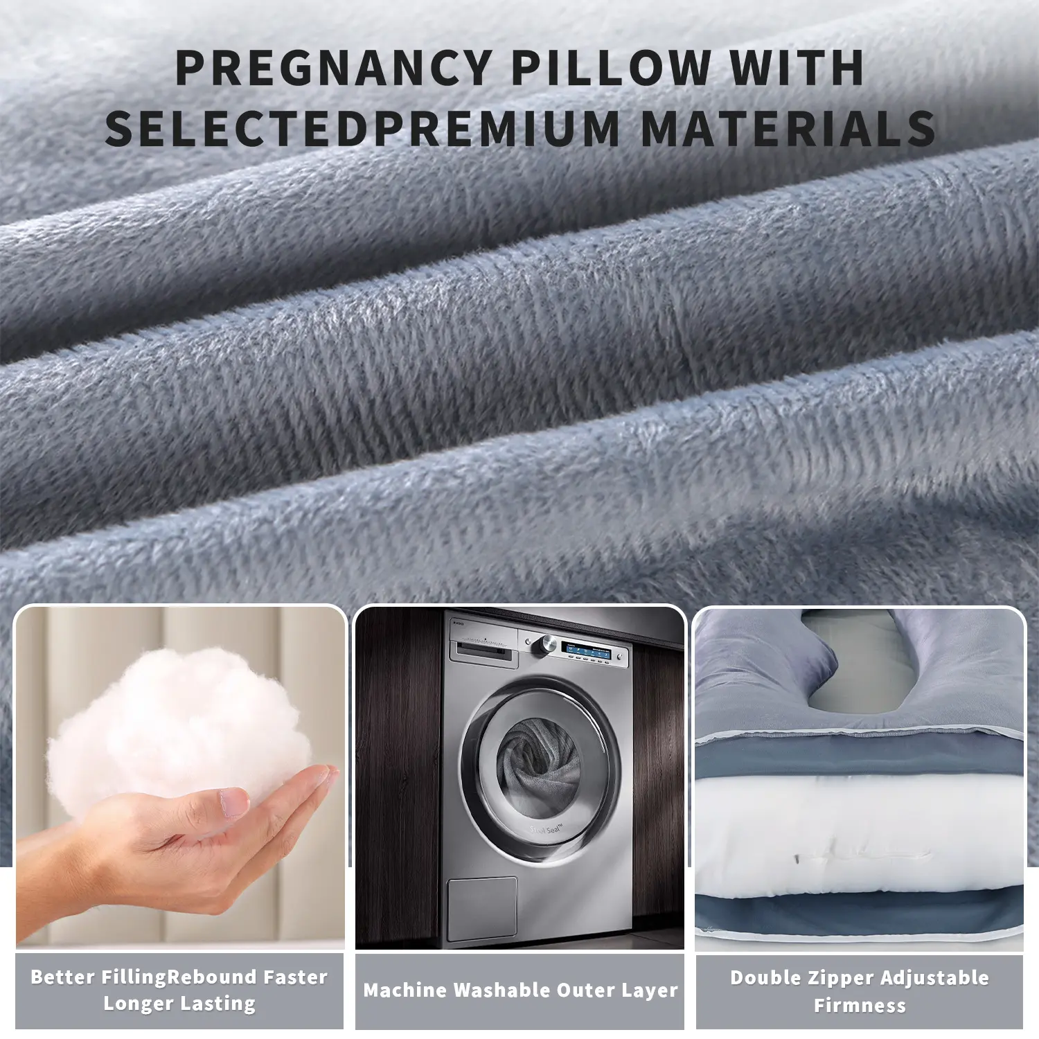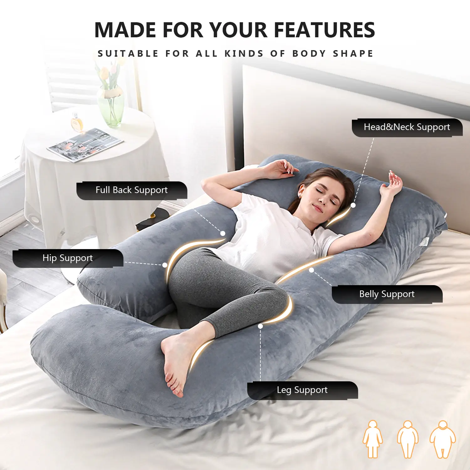 3D Spinal Alignment Design:Clinically proven to mimic the pelvic support. The U-shape contours to the pregnant abdomen's natural curve, reducing lumbar lordosis and relieving pressure on the sciatic nerve.