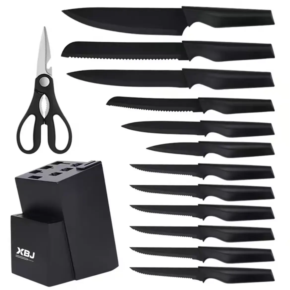 Premium 15-piece Stainless Steel Knife Set with Built-in Sharpener
