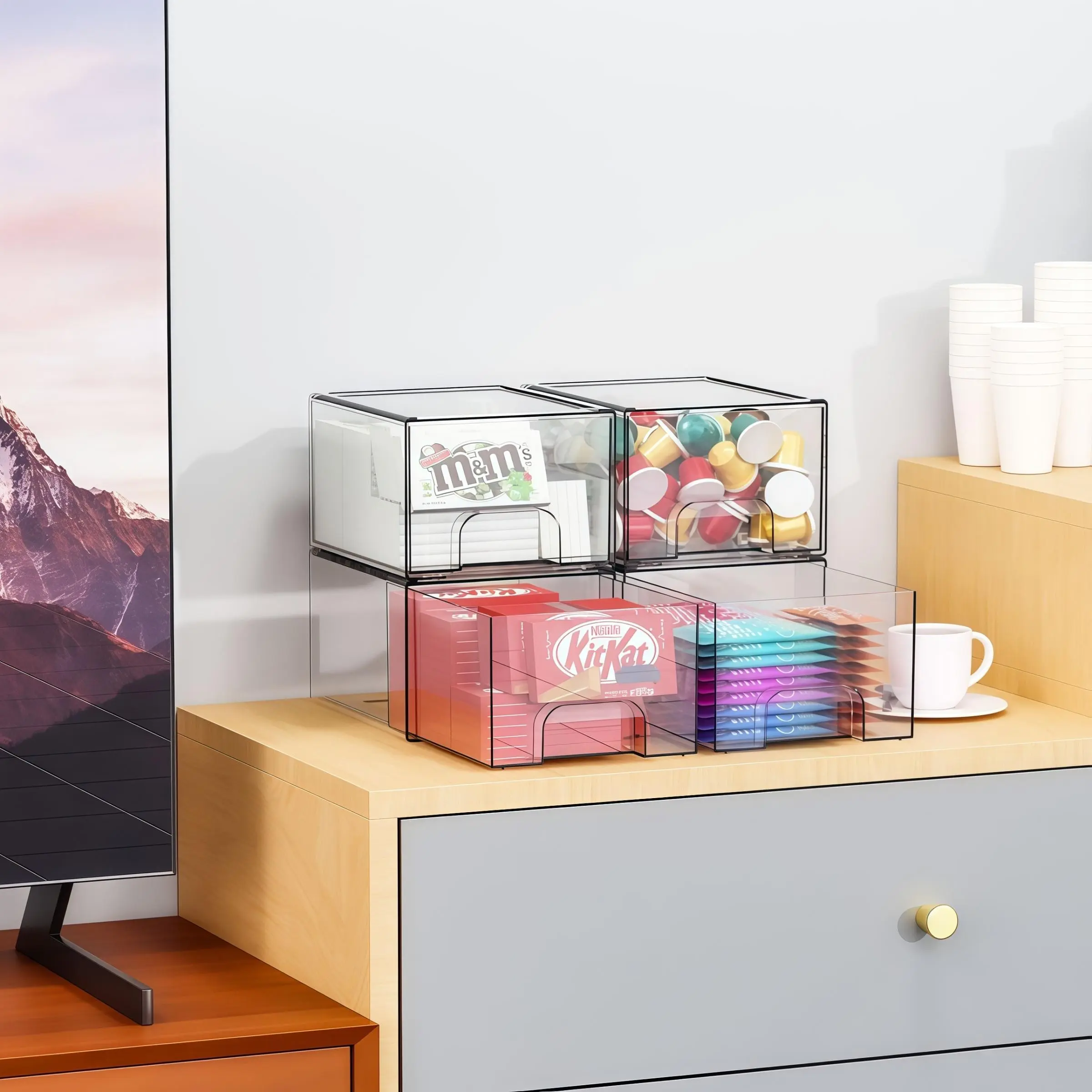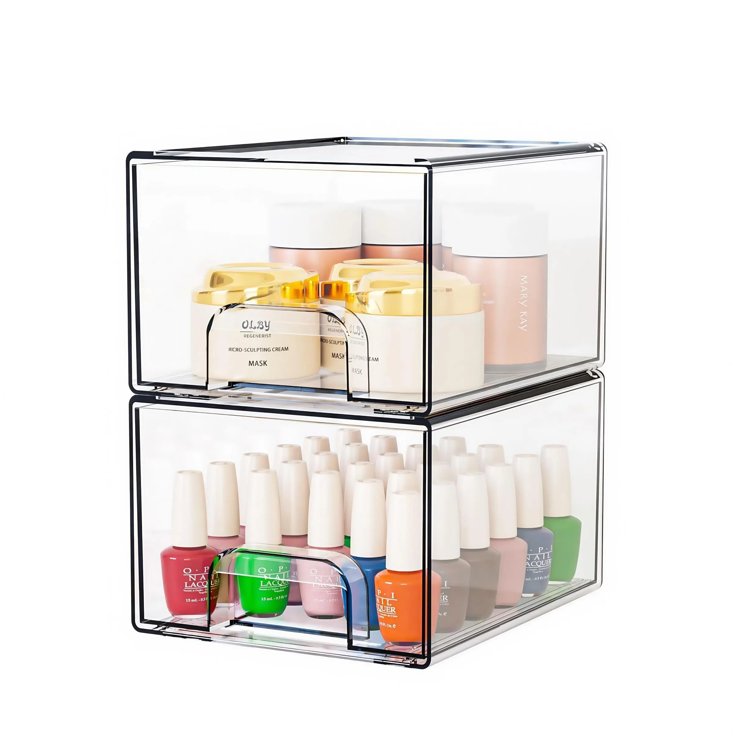 Stackable Cosmetic Storage Drawers, Premium Acrylic Makeup Organizer Box, Stackable Design, Organized Storage, Storage Solution, Nail Polish Storage, Compact Footprint, for Vanity, Bathroom, Sink Under, Kitchen Cabinet, Multi-Functional