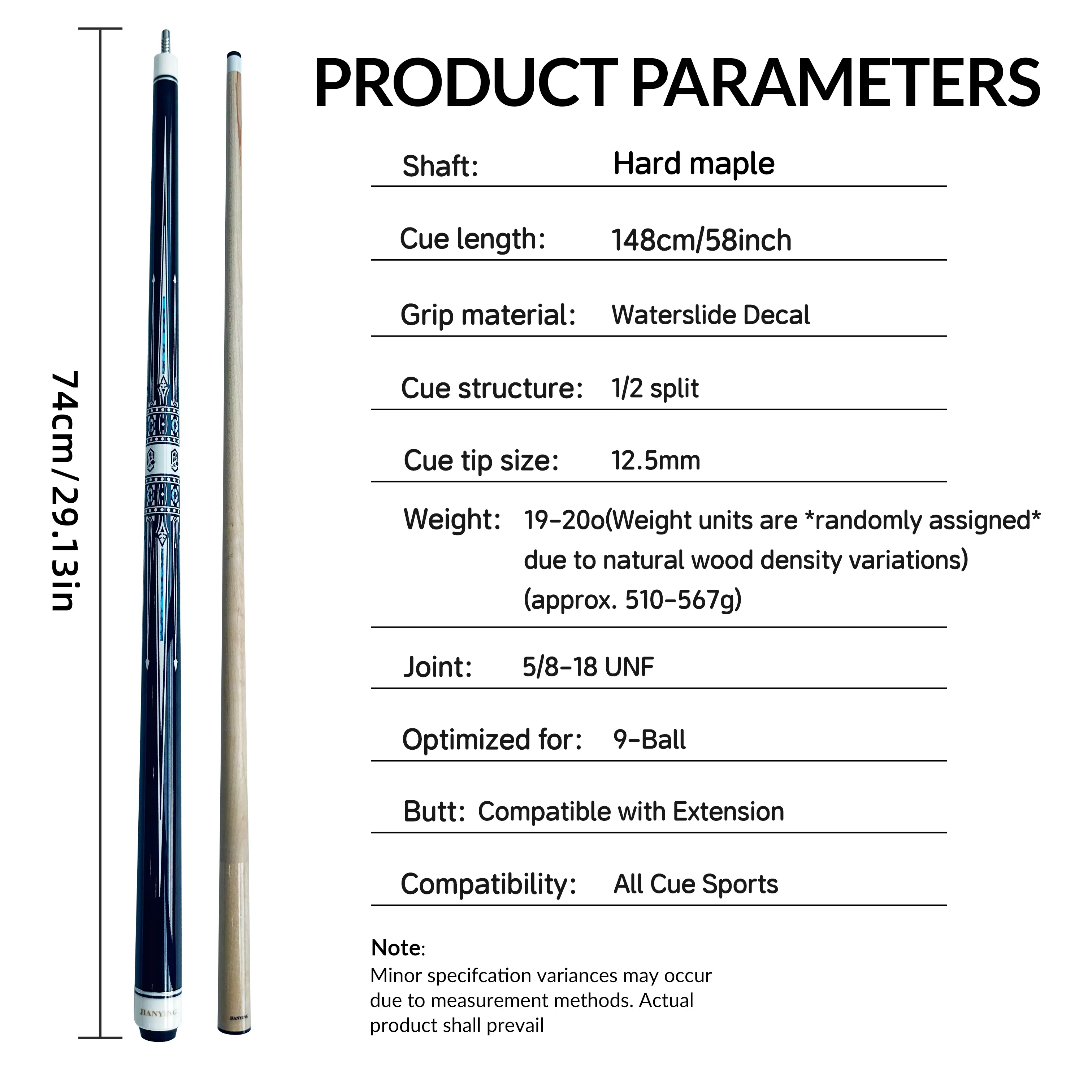 Premium Billiards Cue Set With Leather Case, 1/2 Split, 12.5mm Tip, 18-20oz Weight, 58 inches Length, Perfect for Professional and Recreational Player.