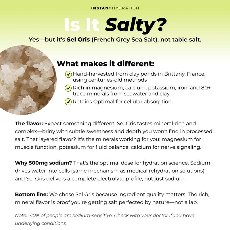 ·500mg Sodium – From French Sel Gris, mineral-rich for real hydration (not stripped table salt)