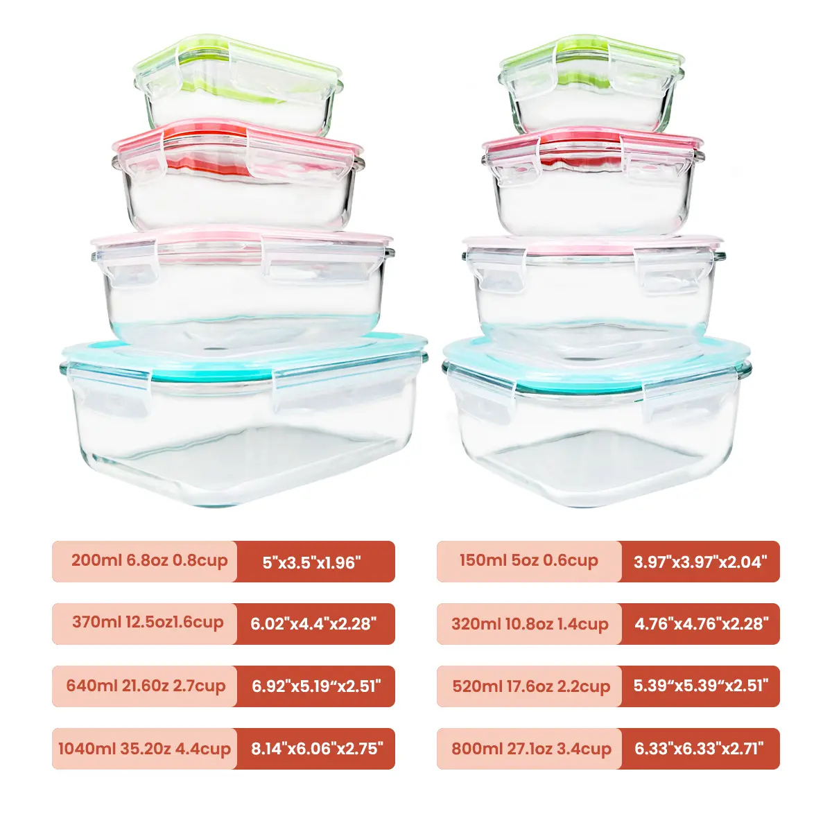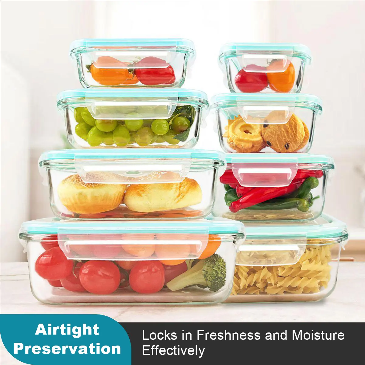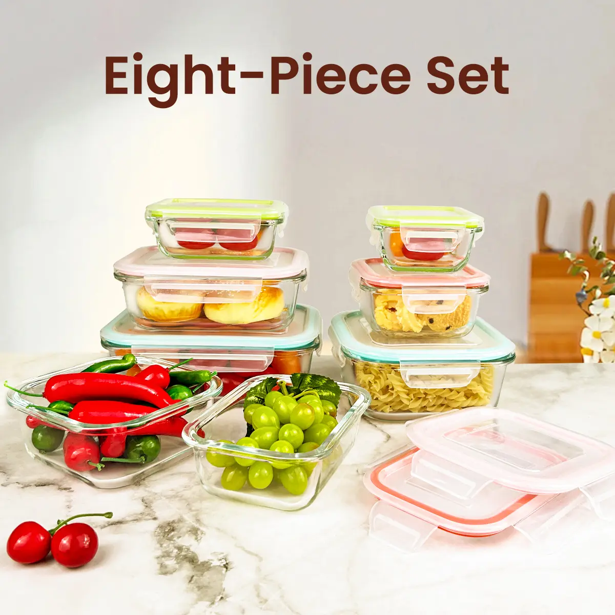 ·Our Premium Glass Food Storage Containers come in an 8-pack set. The stackable square design maximizes space. Airtight lids ensure food stays fresh. Perfect for oven, microwave, and freezer use, these containers are safe for high temperatures.