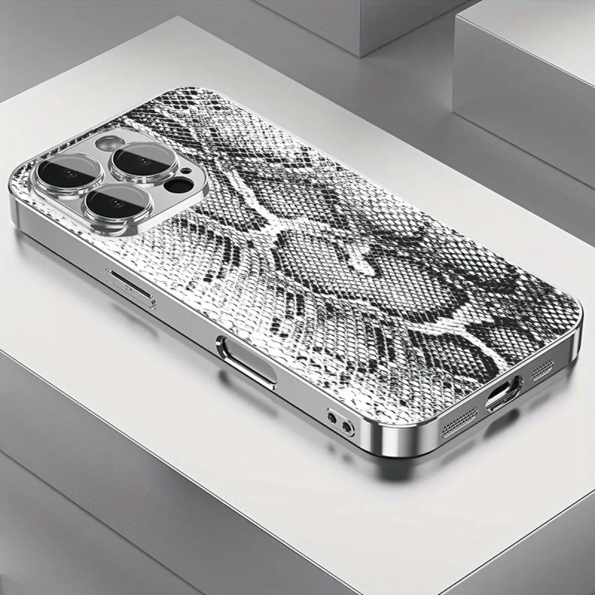 Premium Snake Skin iPhone Case with Electroplated Edges - Trendy Luxury Style for iPhone 17/16/15 Pro Max 14 Plus/13/12/11 Pro Air