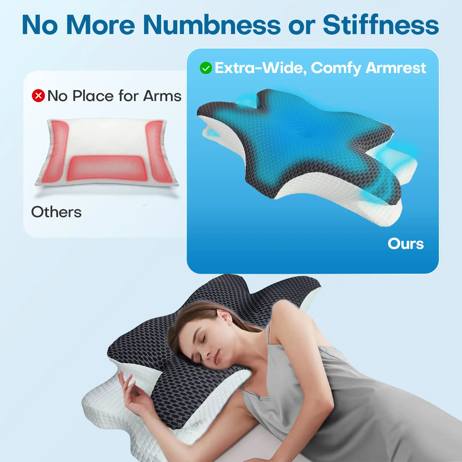 This pillow has changed my life! I’ve only used it for two nights, but I could already tell that my neck feels so much better. I don’t have pinched nerves on my shoulder blades. I definitely recommend this pillow. Make sure you get to if you can. My husband loves his too.