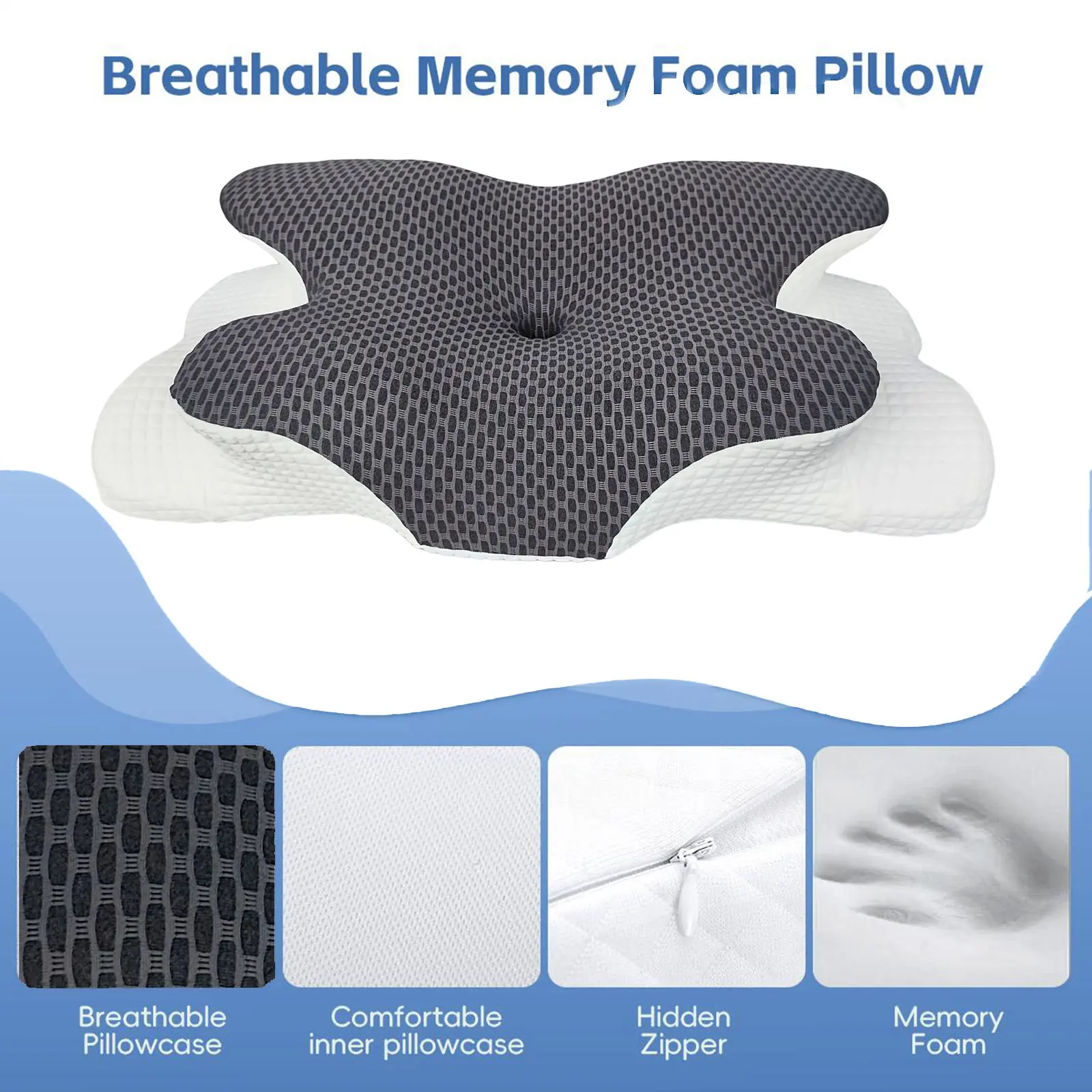 Premium breathable neck pillow for side and back sleepers, supportive memory foam bed pillow for ultimate comfort. Sleep aid, sleep pillow, Christmas gift, holiday gift