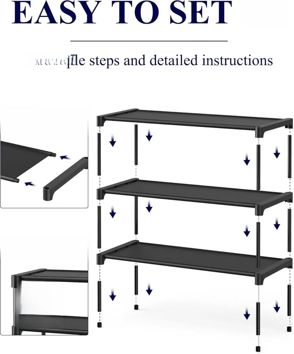 Provides clear step-by-step instructions and an installation video. Setting up this tool-free organizer is simple. Just follow 4 easy steps without screws or tools. Quick and hassle-free!