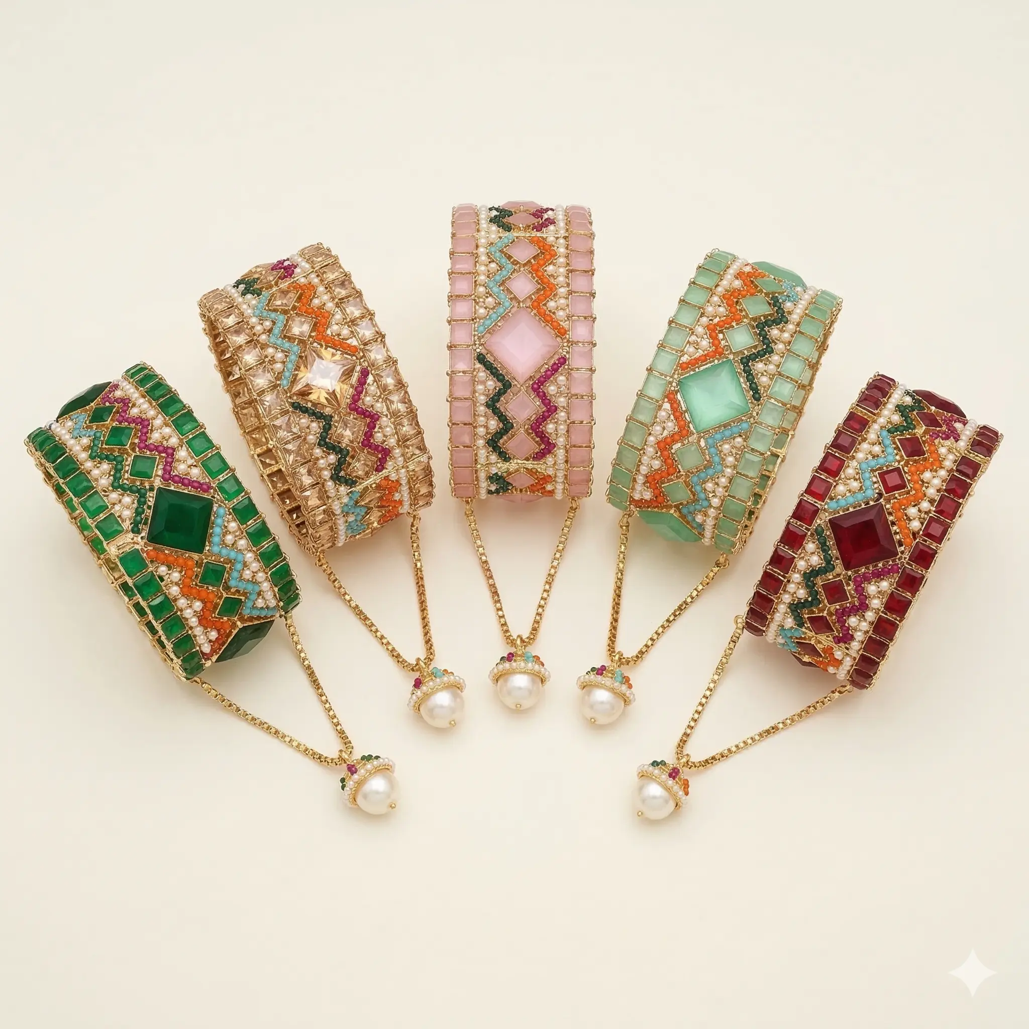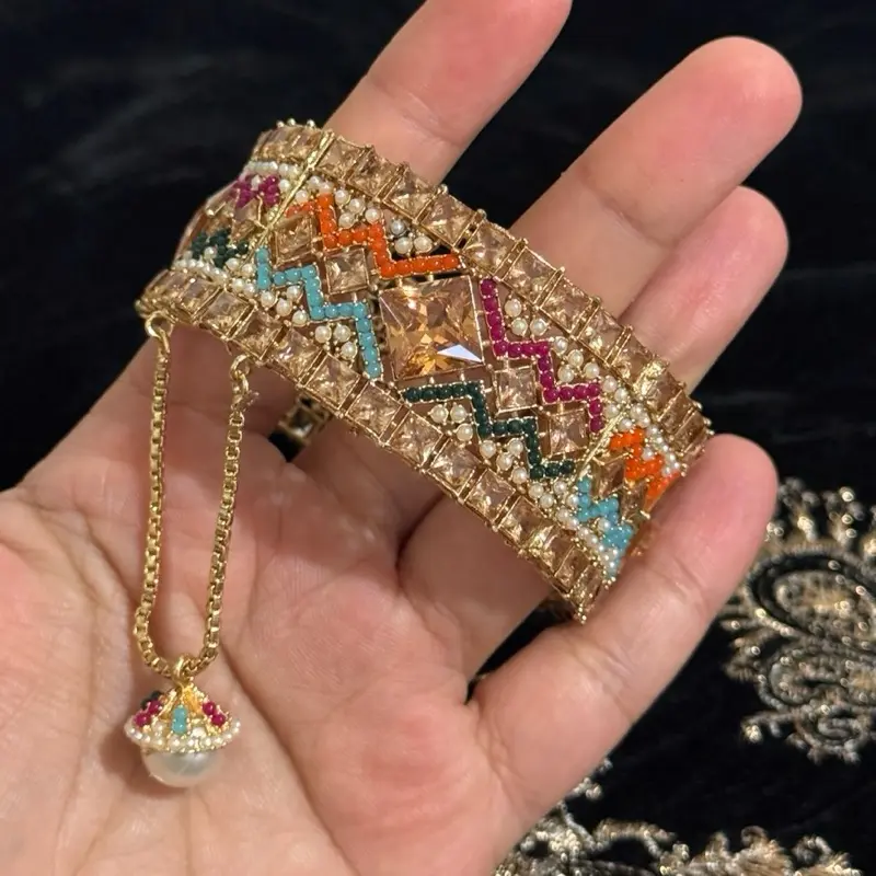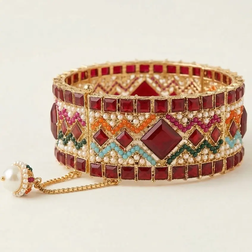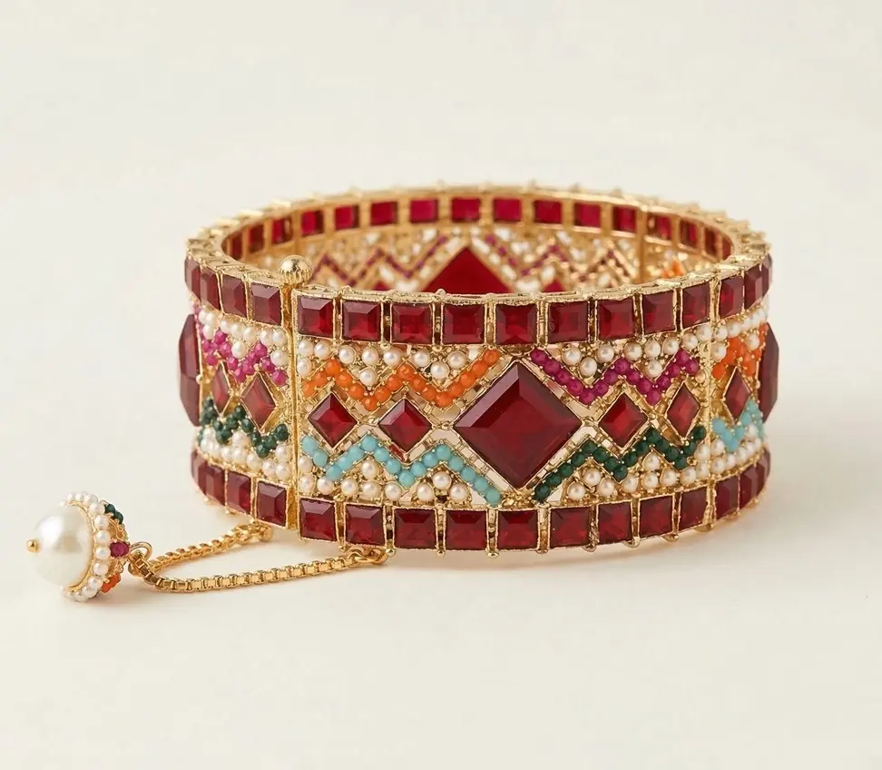 The openable design ensures easy wear and a secure fit, making it both stylish and practical. Whether you're dressing for a wedding, festive gathering, party, or special occasion, this bangle delivers a rich, royal finish that completes your look effortlessly.