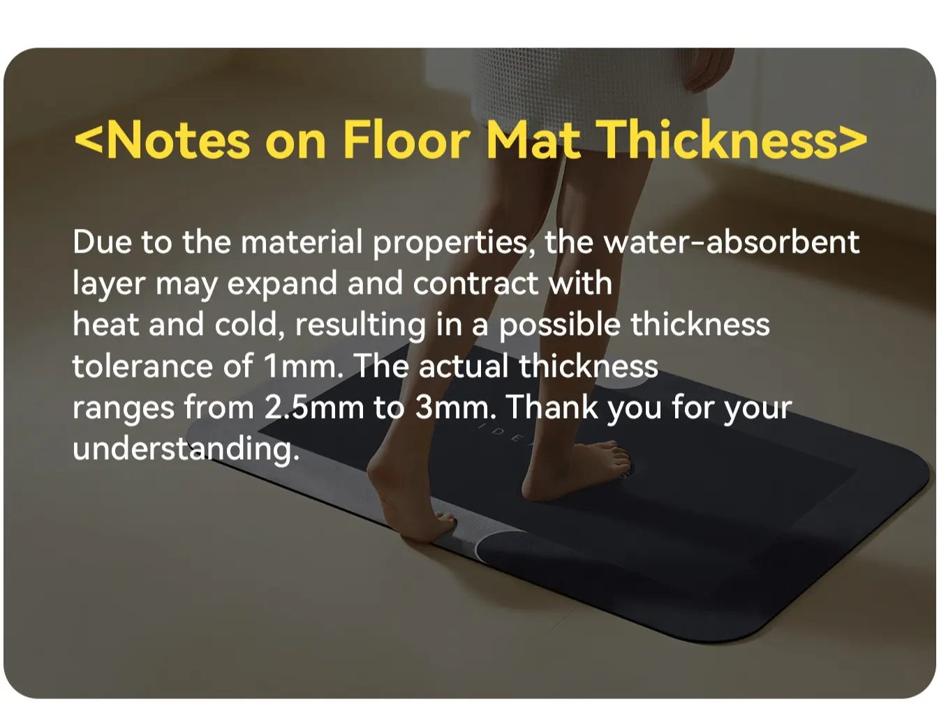 The mat’s color is very durable and matches my home’s style well, keeping the bathroom looking clean and tidy. It’s truly stain-resistant and absorbs water quickly—it dries within seconds of stepping on it. For a family that showers daily, it’s very practical and saves a lot of effort in maintenance.