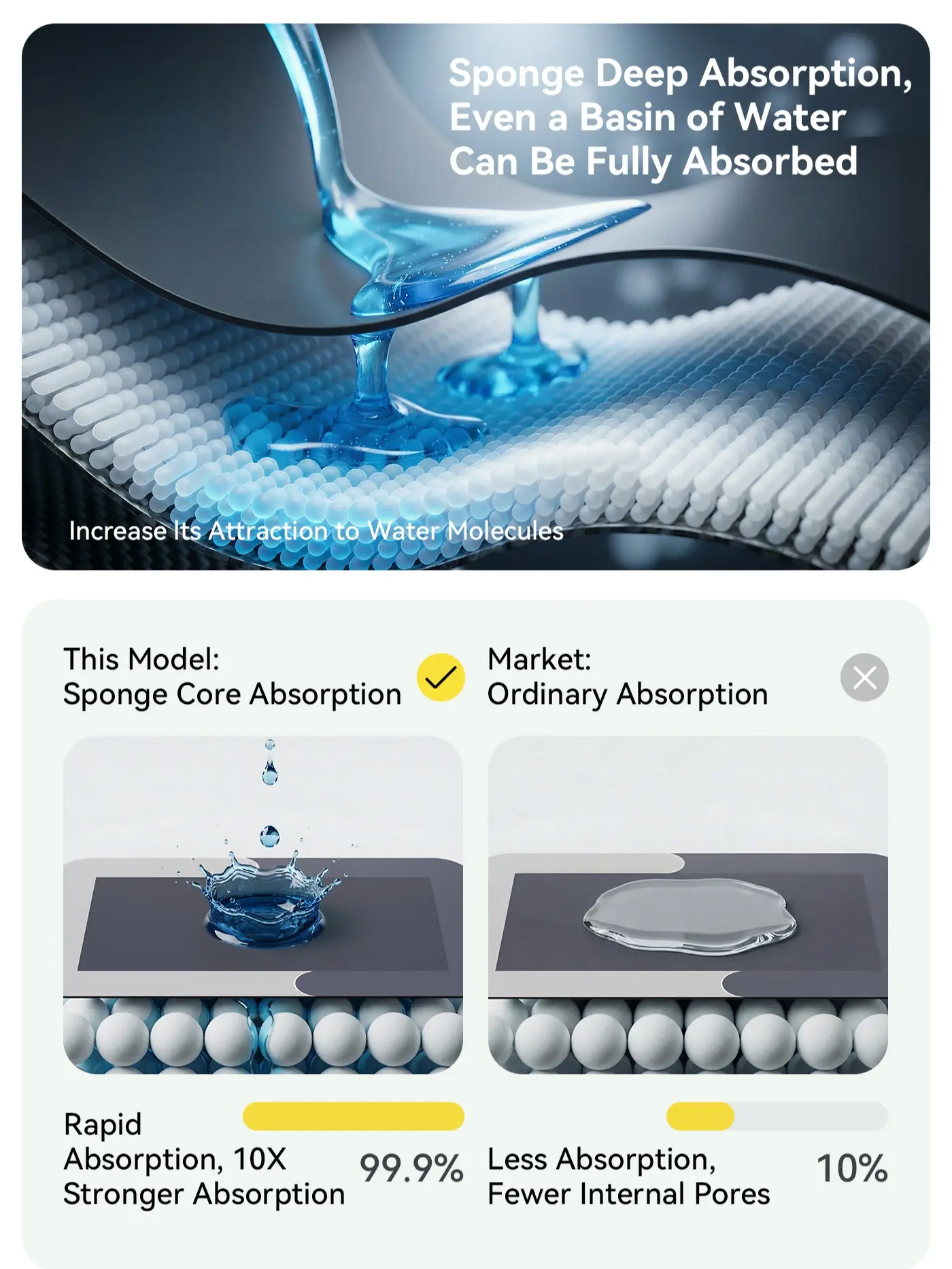 The mat exceeded expectations! The water absorption speed is particularly fast. Step on it twice after coming out of the bathroom, and the soles are dry. No more bringing water all over the house. The back anti-slip design is very stable, and the color is dirt-resistant.