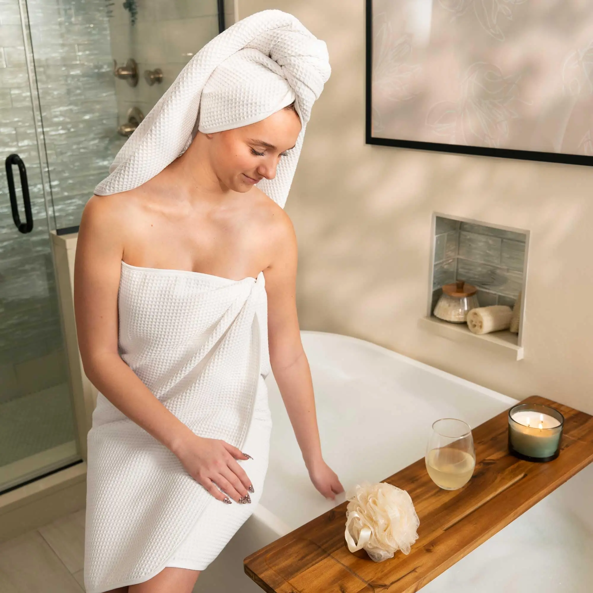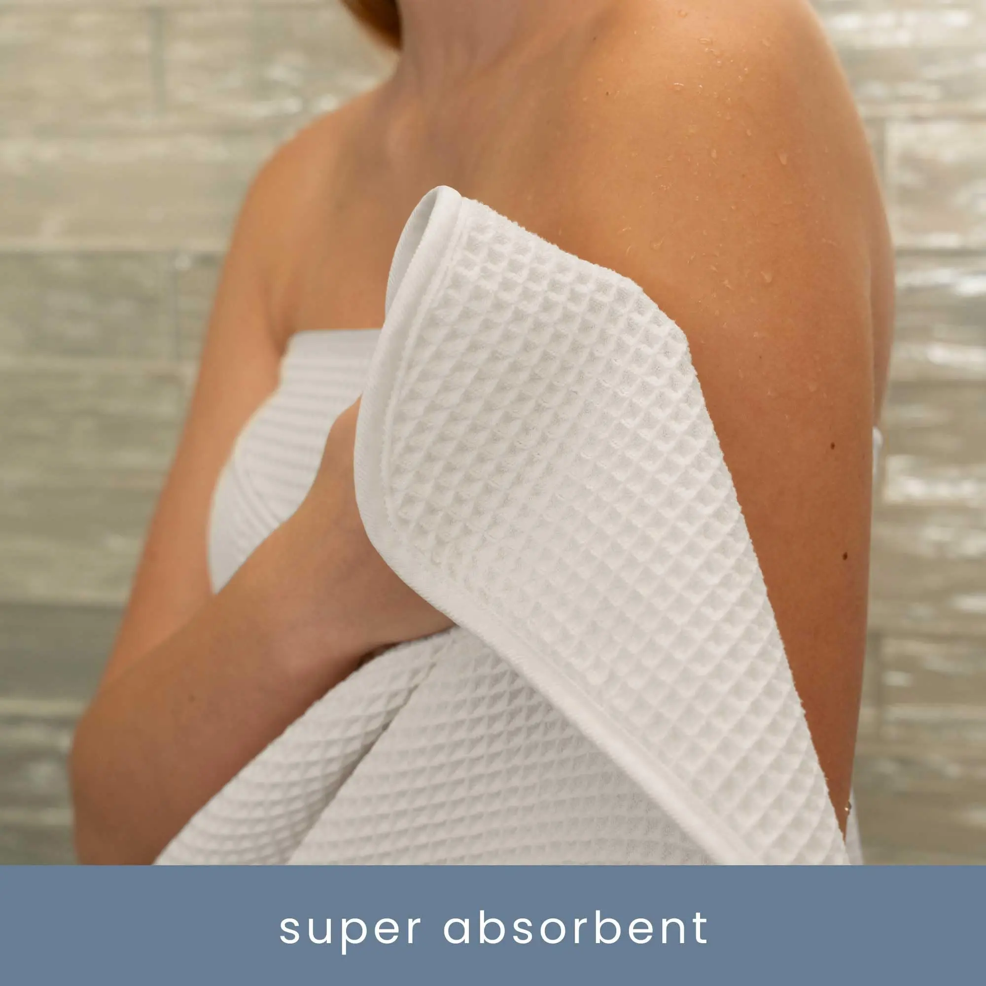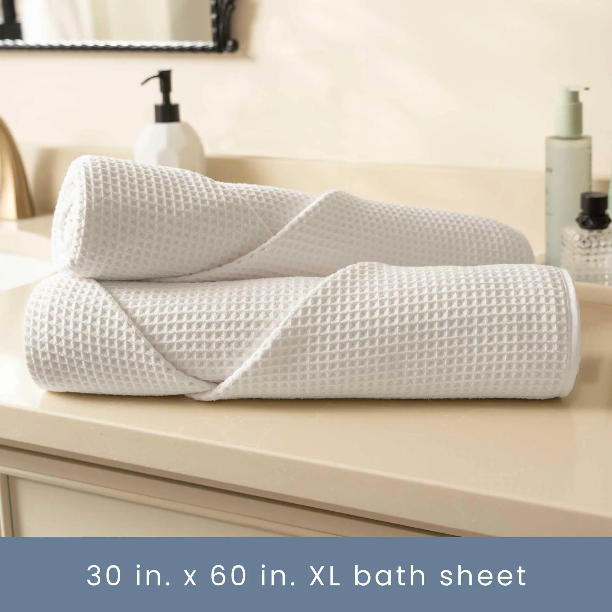 ·The bath sheets are machine washable but to protect the appearance of the luxurious waffle towels for bathroom, please do not wash with items that have hardware that can catch and pull the threads