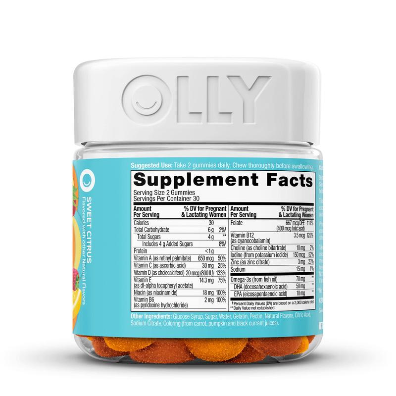 OLLY Essential Prenatal Gummy Multivitamin, Folic Acid, Vitamin D, Omega 3 DHA, Supports Healthy Growth and Brain Development, Citrus Berry - 60 CountOLLY Essential Prenatal Gummy Multivitamin, Folic Acid, Vitamin D, Omega 3 DHA, Supports Healthy Growth and Brain Development, Citrus Berry - 60 Count