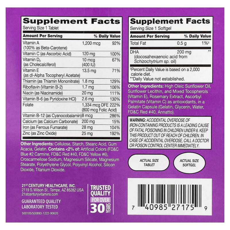 5. 21st Century Prenatal Multivitamin Plus DHA, 2 Bottles, 60 Tablets / 60 Softgels
