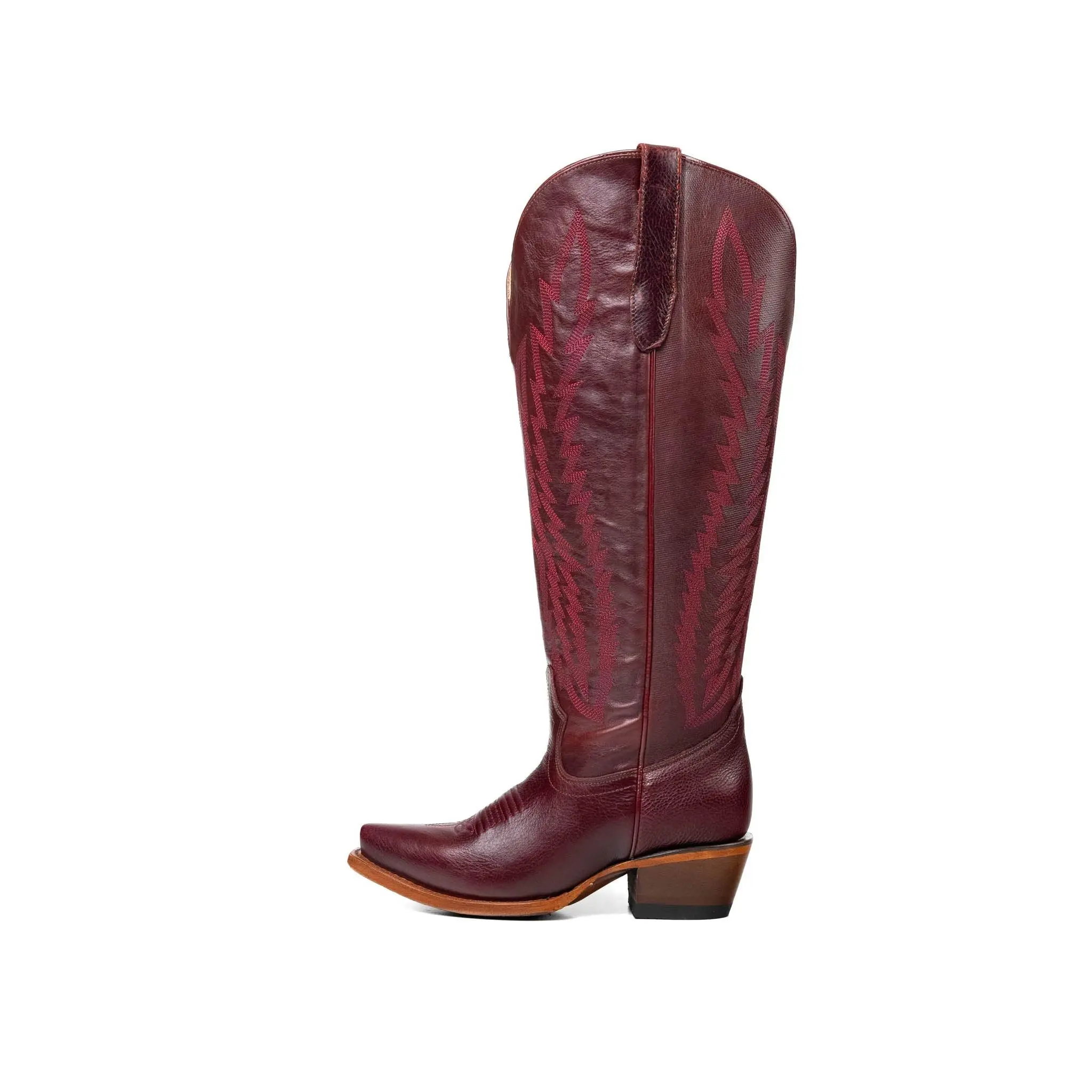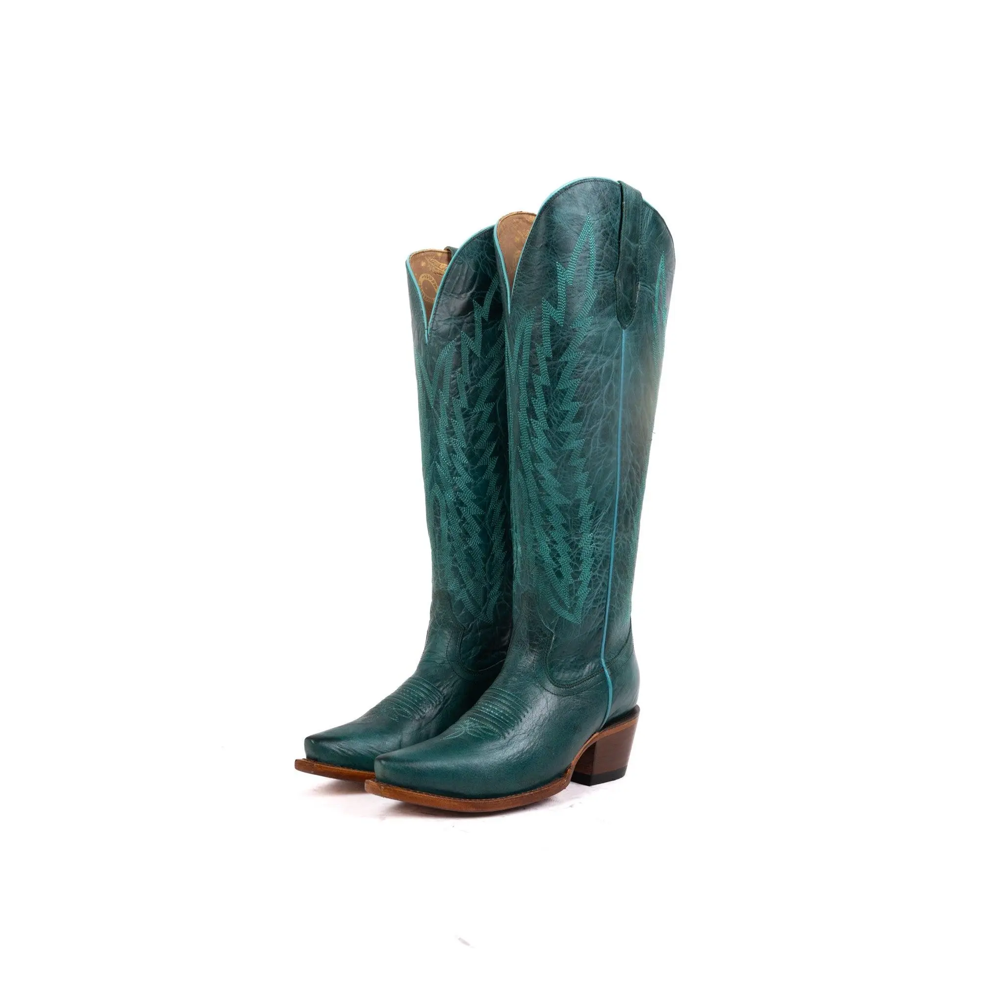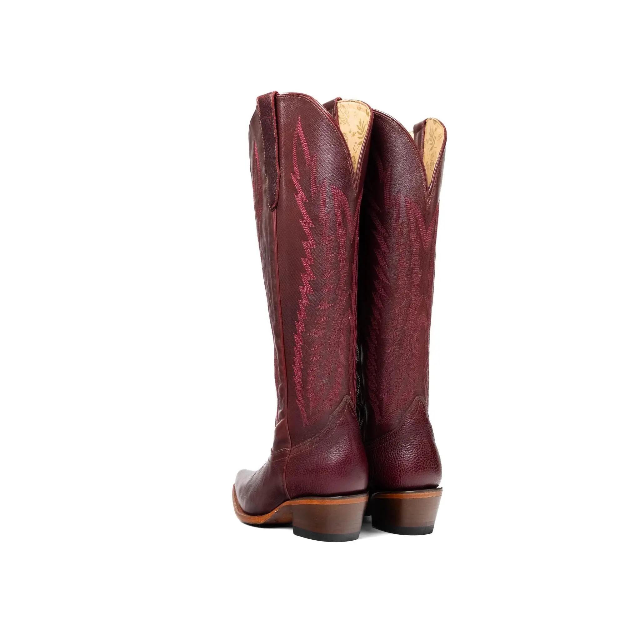 Step into bold elegance with the Presley Tall Wide Calf Snip Toe Cowgirl Boot – a powerful blend of classic Western heritage and statement-making style. Expertly handcrafted in Mexico from genuine leather, this tall boot features a flattering snip toe and ornate shaft stitching. Designed with a wide calf-friendly shaft, it offers a more inclusive and comfortable fit without sacrificing style. The Presley boot delivers standout design, long-lasting comfort, and undeniable cowgirl confidence – whether you’re dressing up for a special event or putting in work on the ranch.