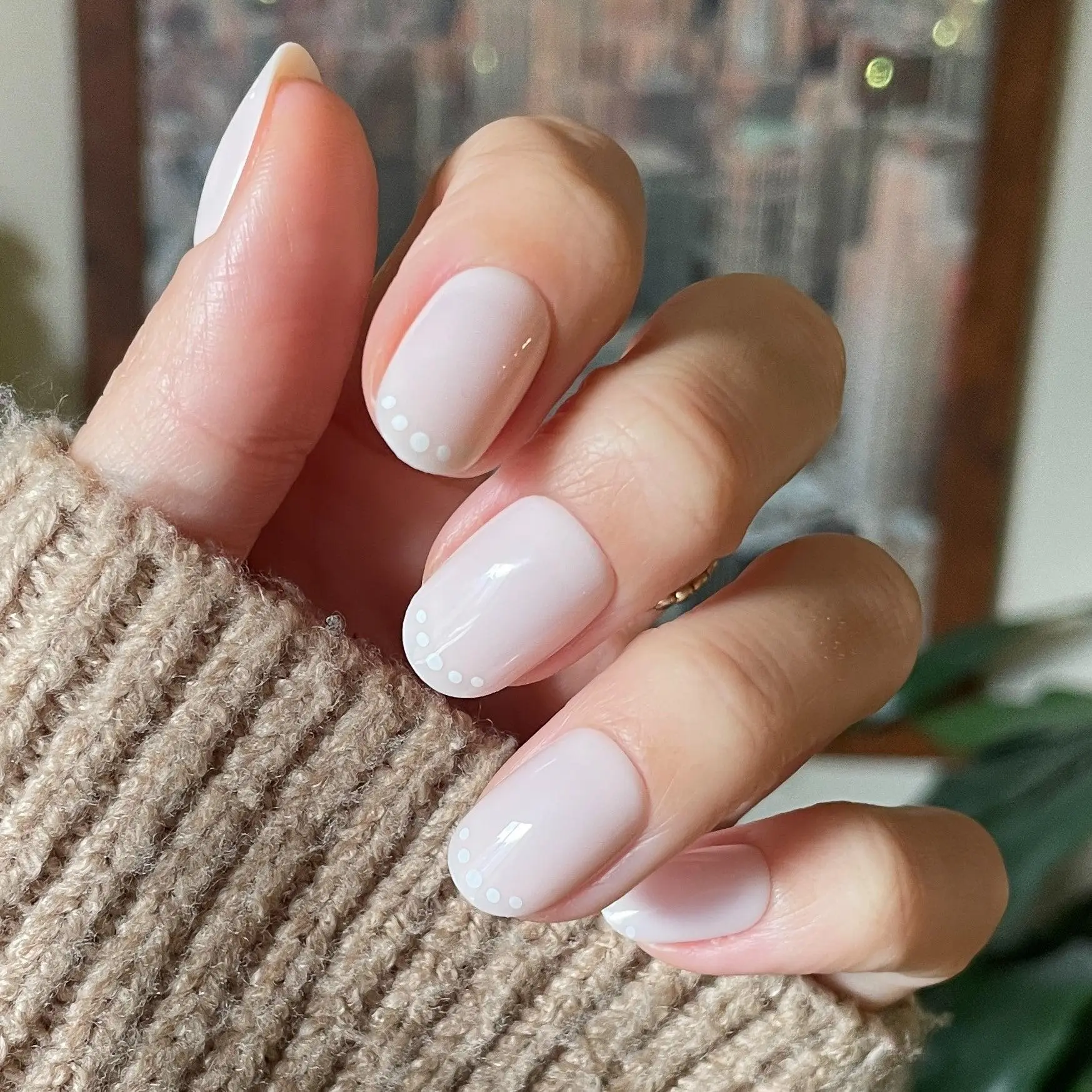 4. Dotted French | Short | Round - Tab Press-On