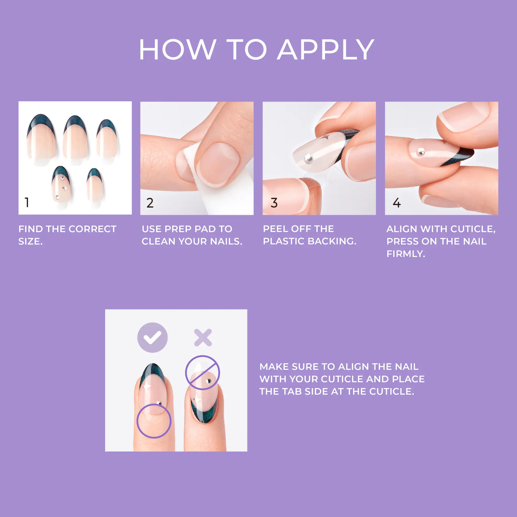 ·Nail kit contains 30 perfectly manicured press on nails, prep pad, mini nail file, and manicure stick