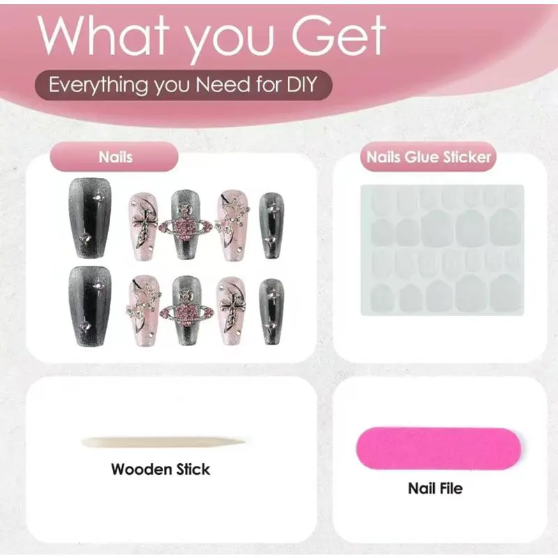 It's an adorable nail design but if you want it to last longer you should get a strong nail glue because it comes with those jelly sticker things and they aren't really reliable 💜💜