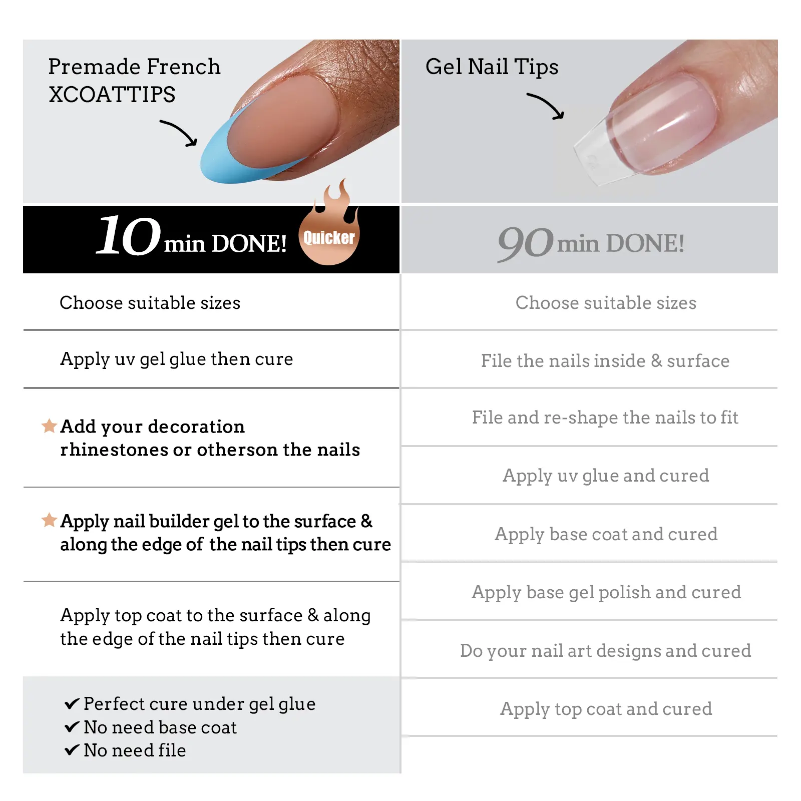 Best press on nails ever. I put them in and received so many compliments. Lasted 5 weeks