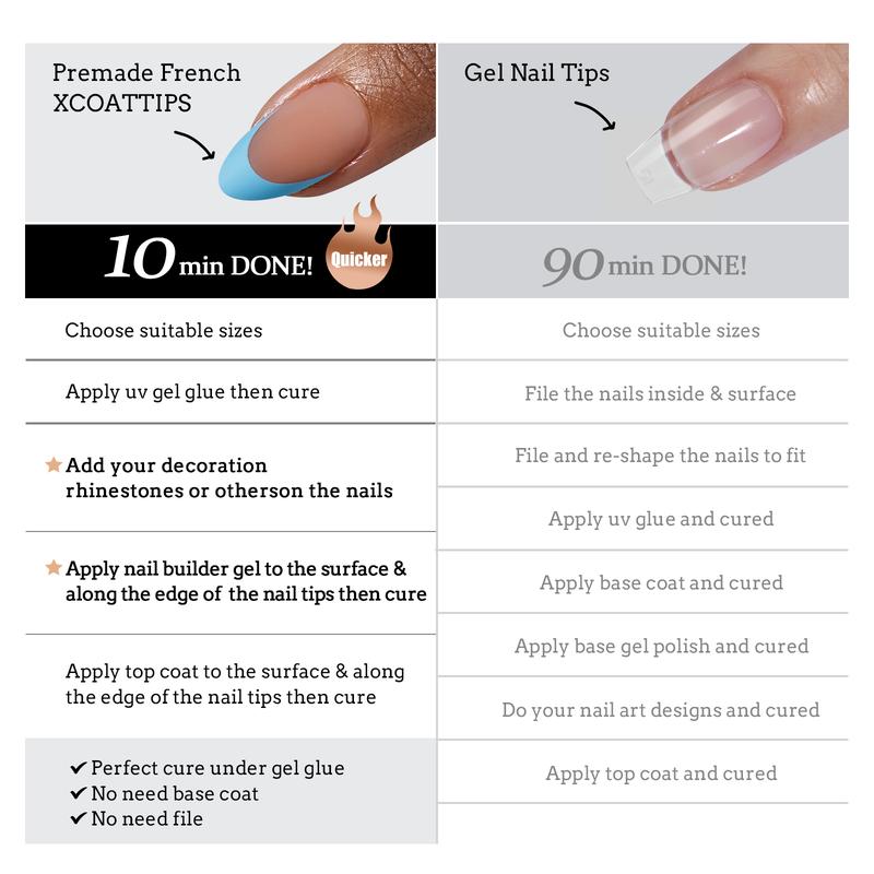 The nail quality is amazing! This was my first try and it was okay. Went over board with the glue as you can see. The UV light was horrible, definitely need to buy a different brand.