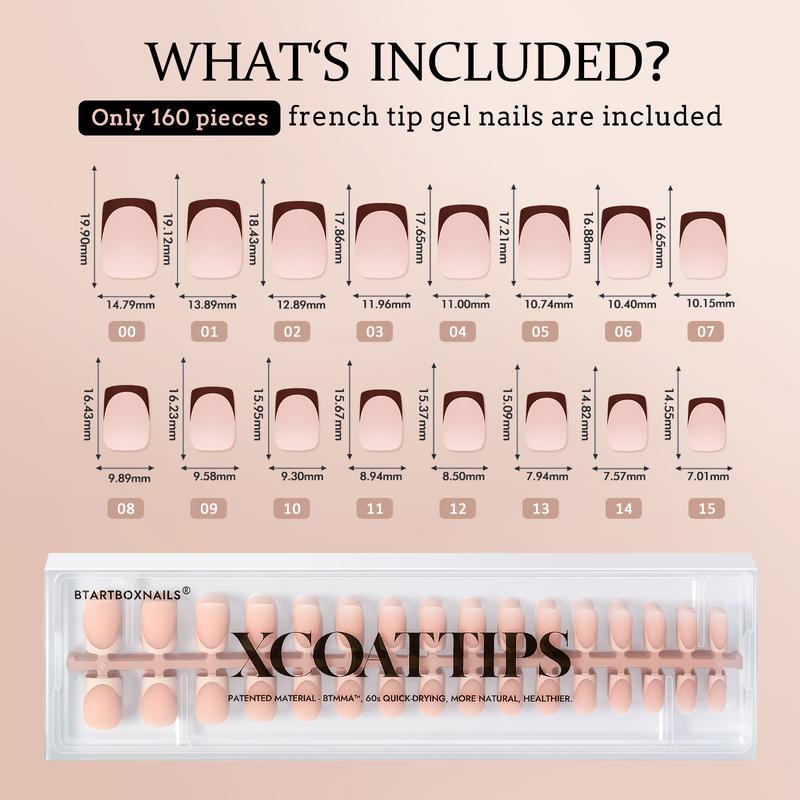 ·IDEAL FOR FRENCH MANICURE: btartboxnails XCOATTIPS French Nails Series brings you netural colors and classic designs. 150/160Pcs nail tips, nail gel, builder gel, top coat, nail lamp and nail file contained. You can create your unique design in fewer steps.