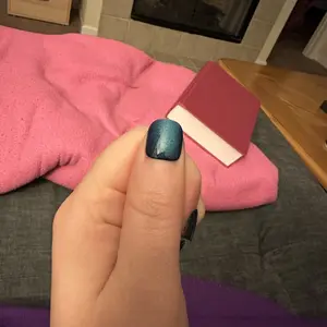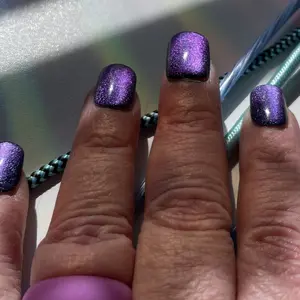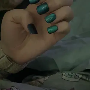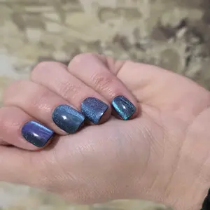 ·On-trend solid color dark green press on nails are short length & squoval shaped with a magnetic, velvet, cateye effect