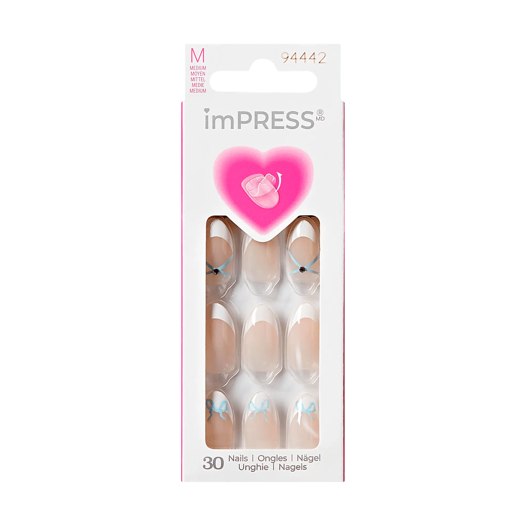 I absolutely love imPRESS nails! They stay for a long time and no need for glue. They come in great sizes, shapes and colors. Especially love the blue bow on this set. Will never order another brand again!
