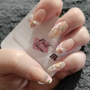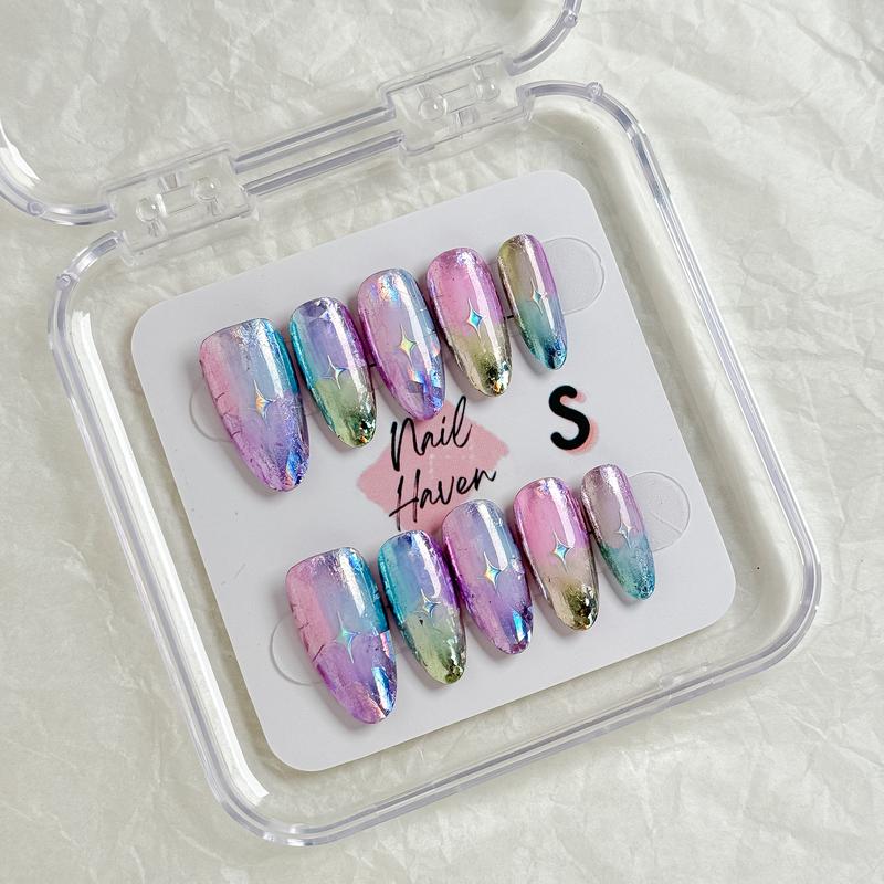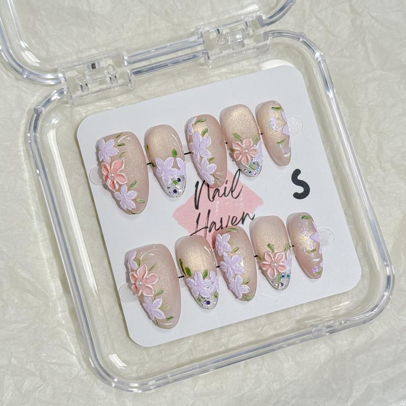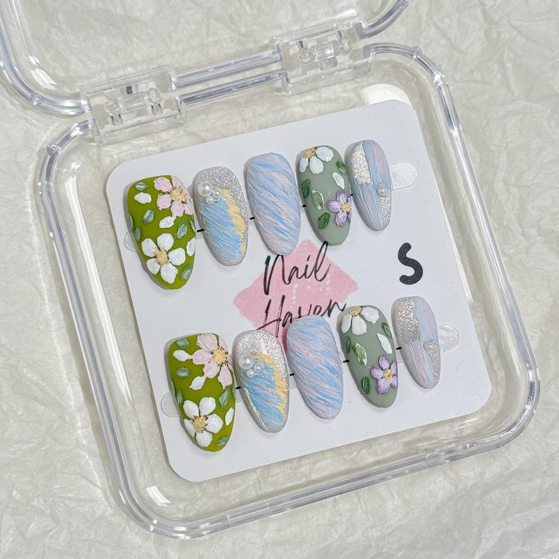 NailHaven Almond Shape Continued Collection 10 pcs Handmade Press On Nails Cute Acrylic Fake Nails High Quality Reusable Nail Art Charm