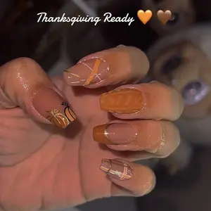 Check out our autumn nails in the holiday collection. The first set is in the almond collection- A36. #PressOnNails #handmade #NailTok #autumnnails #holloween