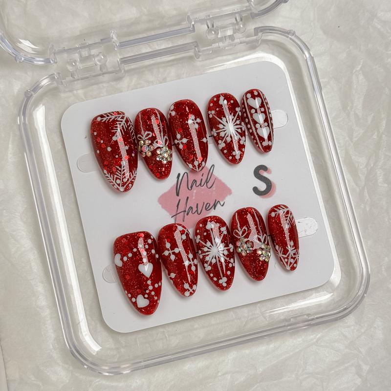 4. NailHaven| holiday nails collection | Christmas designs|| |cute nails| nails | acrylic press-on| fake nails |Handmade | high quality Press on nails 10 pcs|reusable nails|nail art|nail charm|handmade press ons|uña sacri lic as