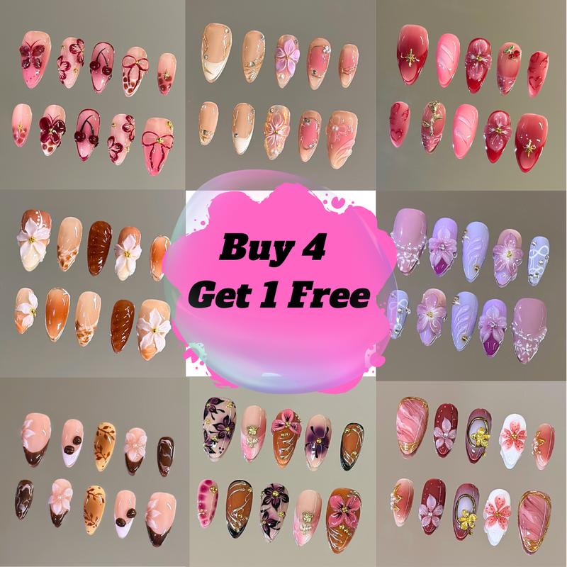 Buy any 4 sets from this link and receive 1 additional set absolutely free! Feel free to mix and match different nail shapes to suit your preferences. As long as your purchase includes 4 sets from this link, you’ll qualify for this exclusive offer. Don’t miss out on this opportunity to expand your collection and save! DM us what freebie you want!