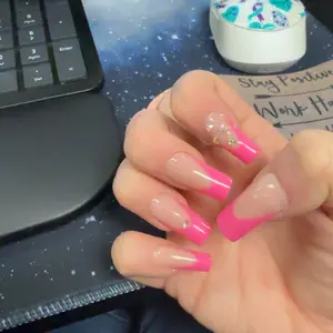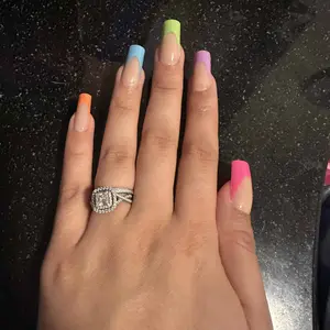 Veryyy beautiful nails!!! I messed up on mine i did my left hand wrong (didnt put glue on the fake nail and mine, only put it on my real nail) and alll my nails on my left hand fell off…and i got engaged🥴so that was unfortunate. But my right hand slayed. I also add flower stickers.