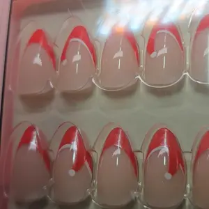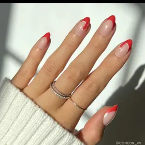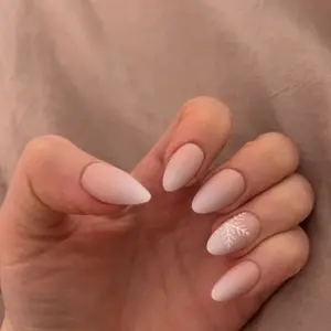 Mrs. Claus brings chic, semi-transparent short almond nails with Santa hat-inspired red French tips and a glazed finish. Snowdrift elevates your look with gradient ombré designs, snowflake accents, and a soft matte texture.
