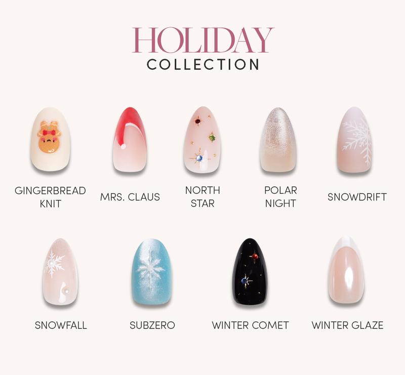 Complete your winter wardrobe with Subzero, pale icy-blue short ovals with snowflake accents and a velvety finish, capturing frosty winter vibes. With every design, this collection ensures a holly jolly addition to your holiday plans.