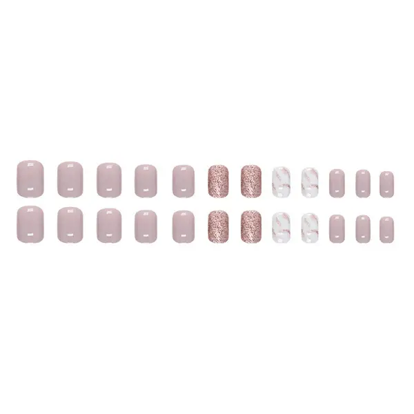 Pink Marble Press On Nails | CurvLife Nail | 24pcs Short Round Fake Nails | Glitter Marble Design | Easy Apply, Comfortable & Natural | Daily, Business & Event Nail Art