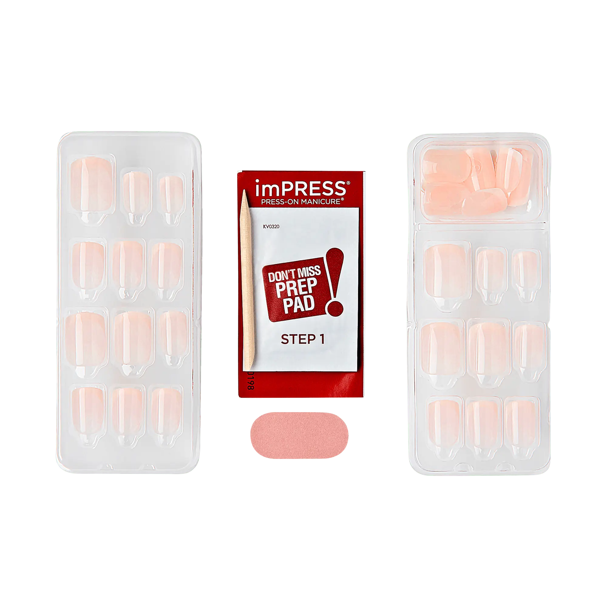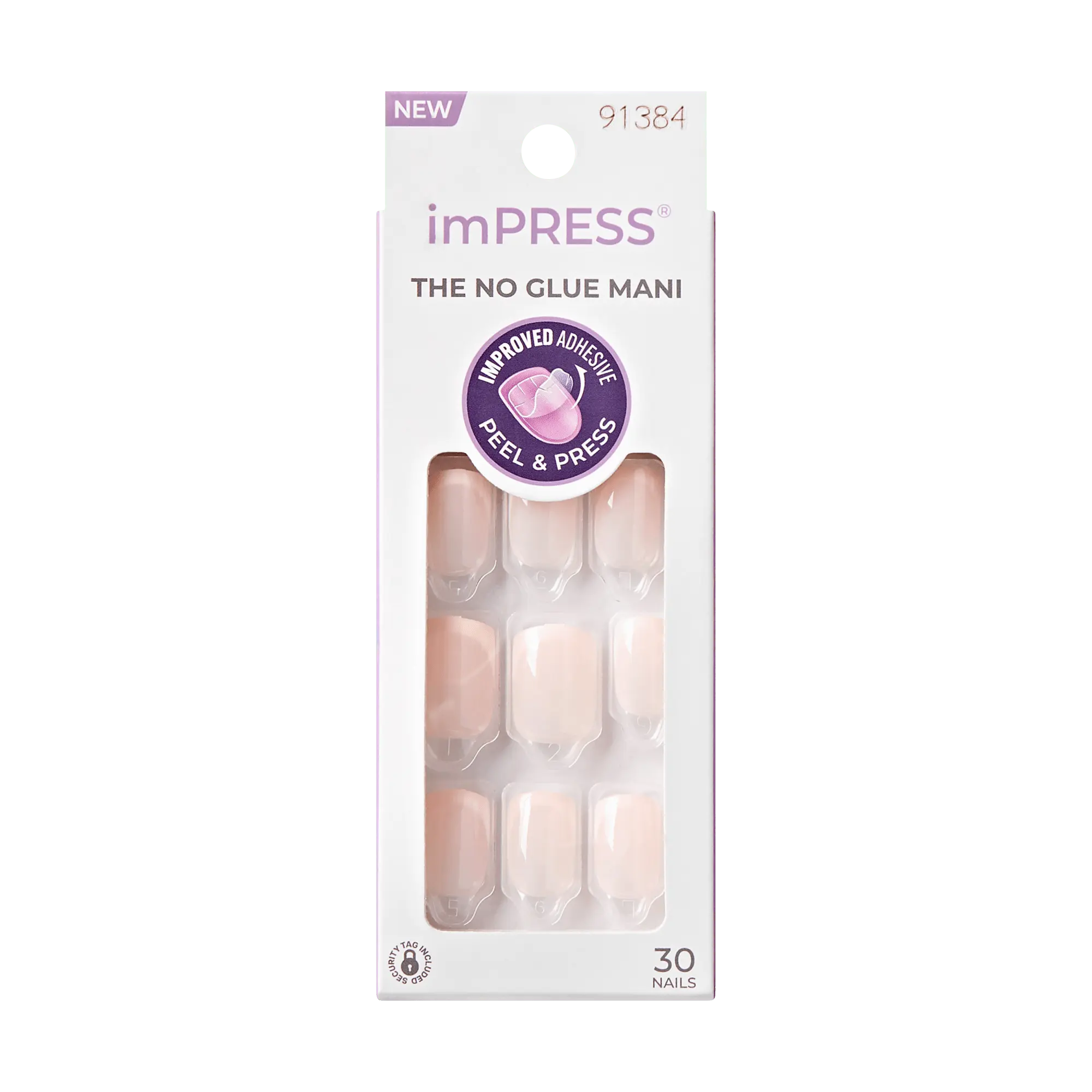 Fancy a new French NO GLUE Mani? Say “oui” to imPRESS Press On French Manicure. With our new improved adhesive, these press on nails are long-lasting with a secure hold that lasts for up to 10 days. Just peel, press & go!