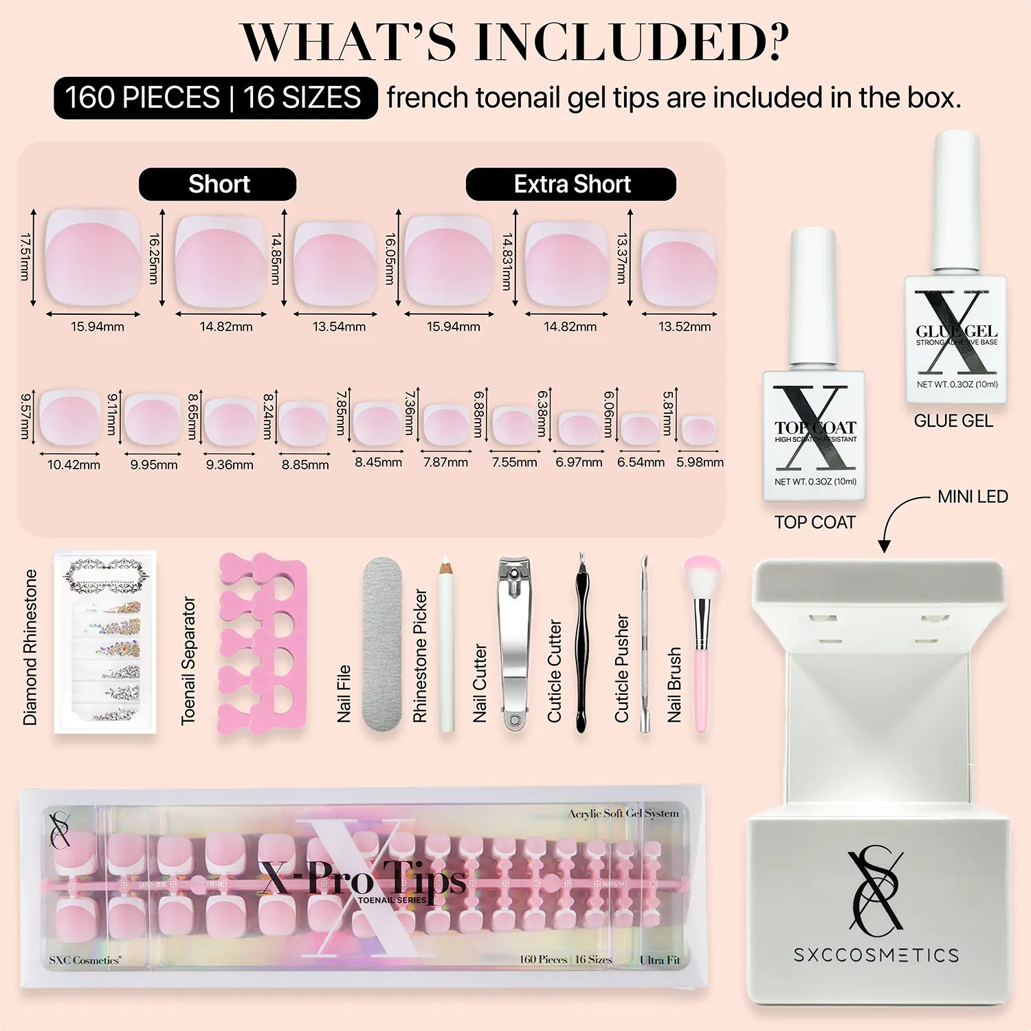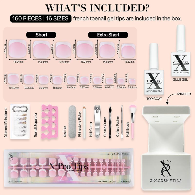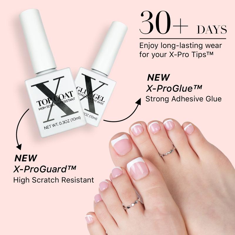 SXC Cosmetics X-Pro Tips French Tip Press On Toenails for Women – Acrylic Soft Gel System Starter Kit – Long-Lasting, Salon-Quality DIY False Toenails – Easy to Apply & Remove