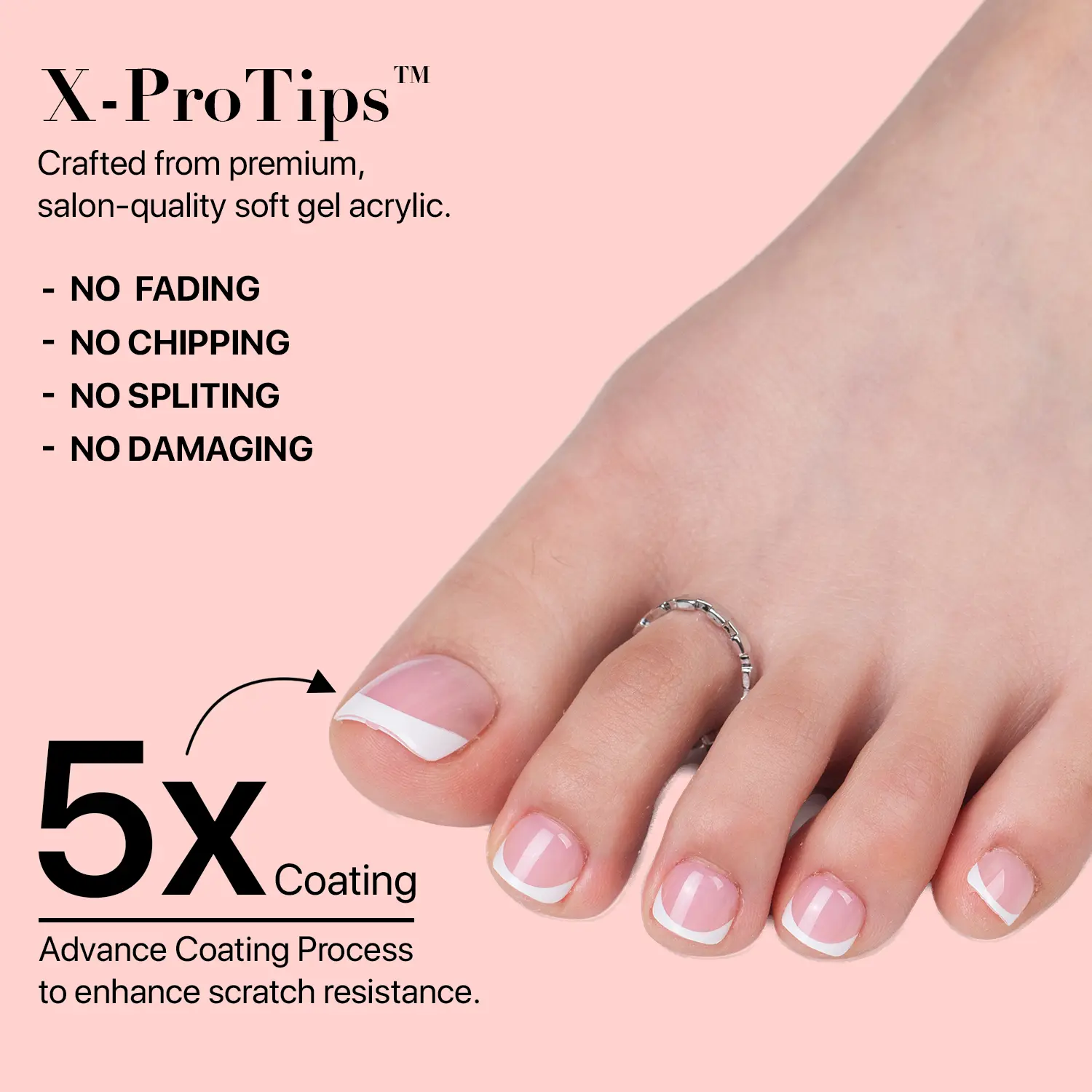Say goodbye to expensive salon visits and hello to effortless beauty with SXC Cosmetics X-Pro Tips French Tip Press-On Toenails!