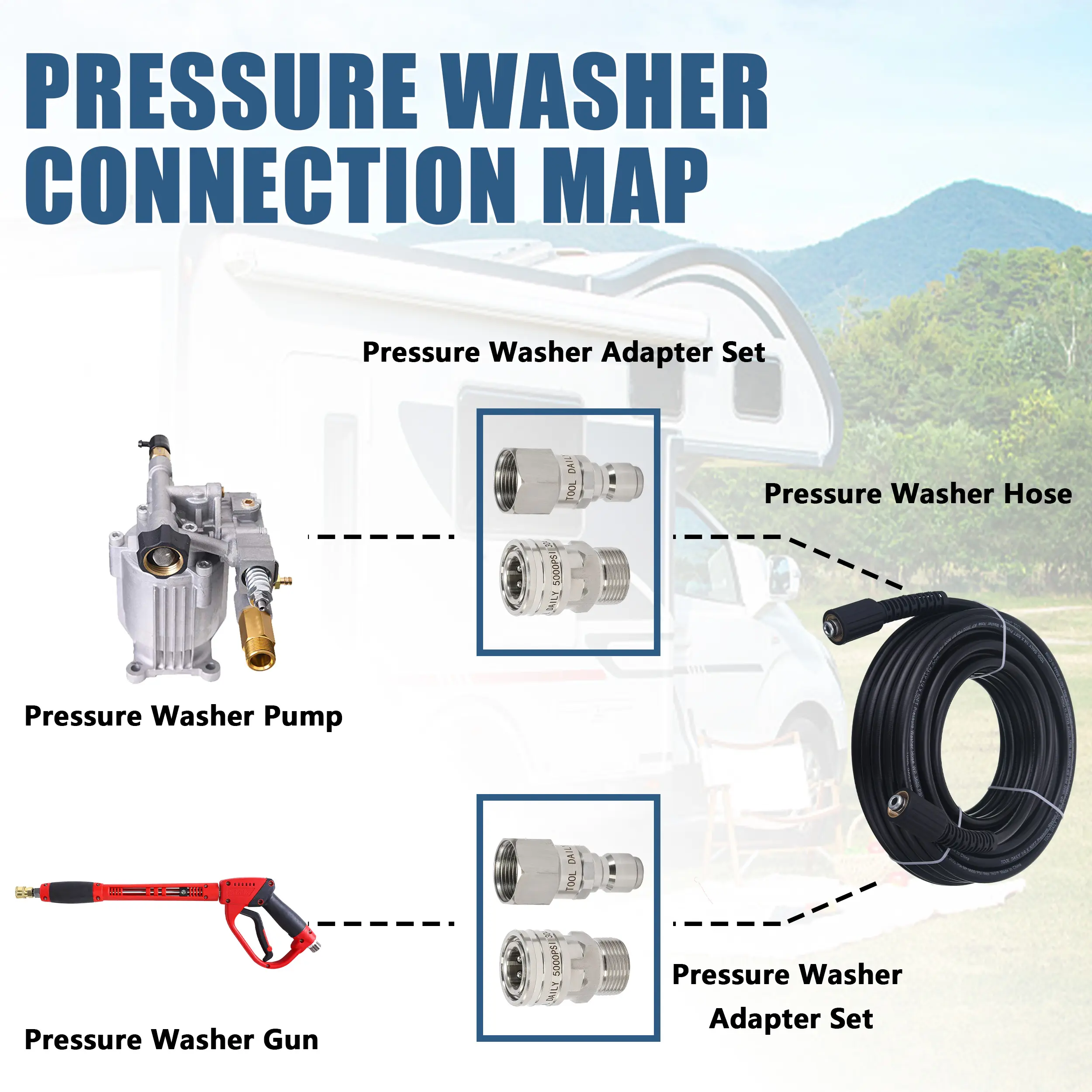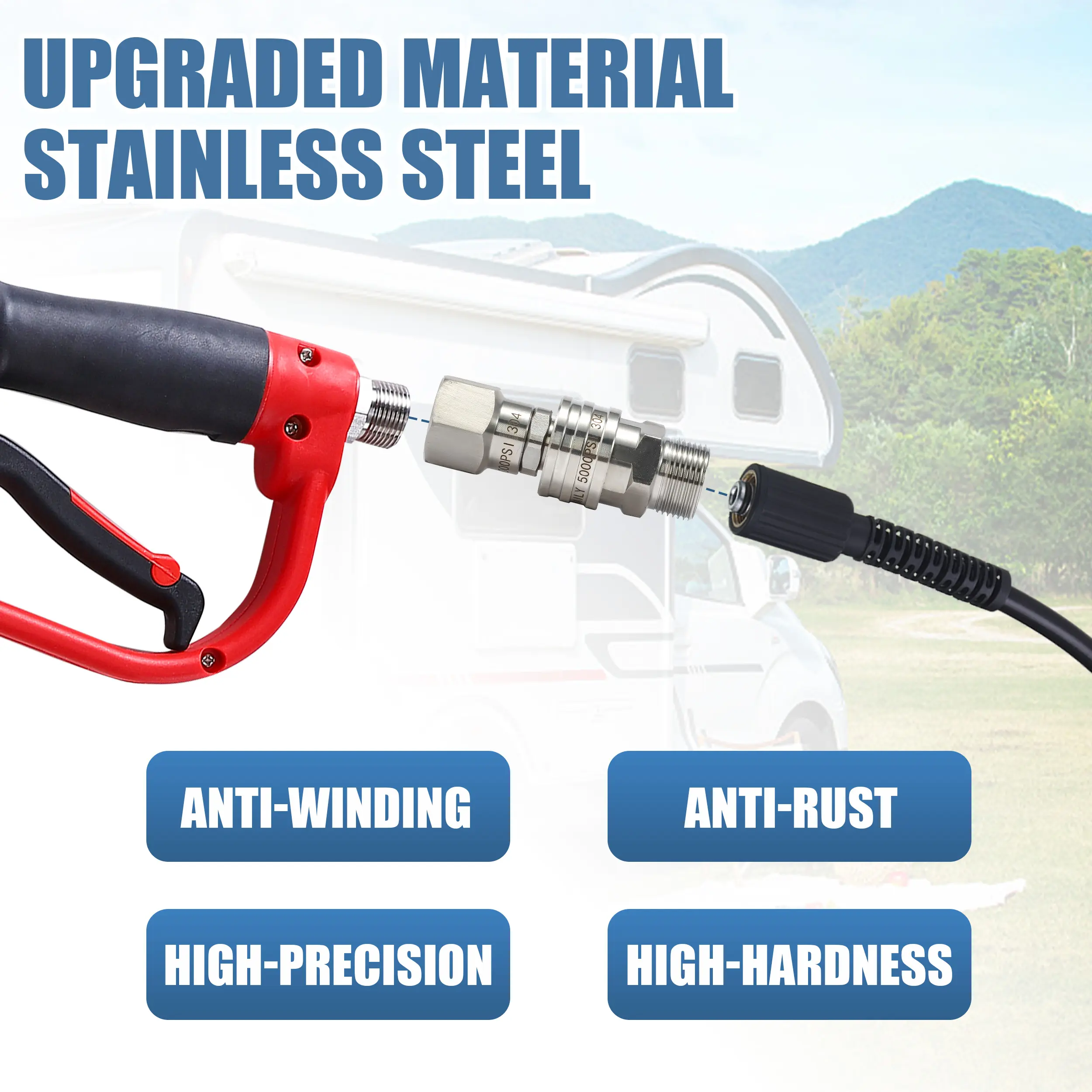 ·QUALITY MATERIAL: Our pressure washer quick connect kit is made of high-quality stainless steel, providing exceptional durability and resistance to corrosion and rust. This ensures that the fitting will last for a long time and remain in excellent condition even after extended use.