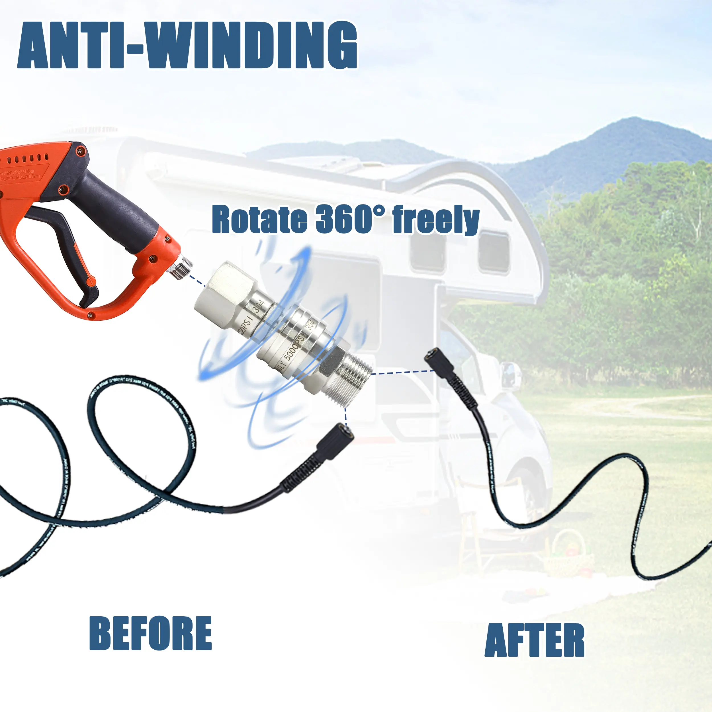 ·360-DEGREE SWIVEL: Our pressure washer swivel fitting is designed with a 360-degree rotation feature, which effectively eliminates kinks in the hose during use. You can easily maneuver your pressure washer without worrying about hose tangles or obstructions.