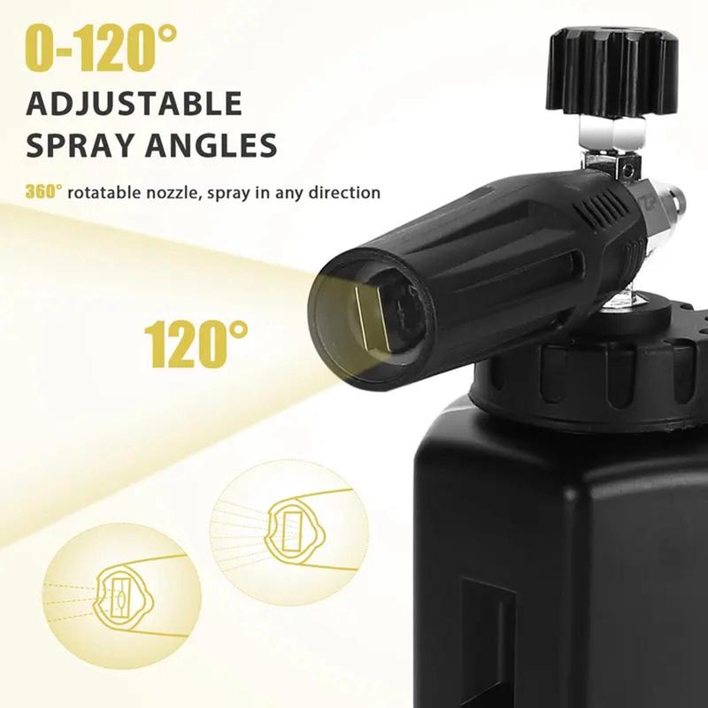 ·ADJUSTABLE FOAM FAN AND DUAL SPRAY SETTINGS: Equipped with a 1.1mm nozzle, adjustable foam fan, and optimized airflow holes, this foam cannon offers dual adjustable spray settings for both vertical and horizontal use. It also includes a versatile foaming nozzle compatible with standard bottles for added convenience.