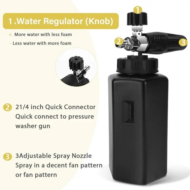 ·STURDY AND INNOVATIVE BASE: Designed with a robust base, this foam cannon stands firmly whether the bottle is empty or full, providing stability and ease of use during your car washing routine.